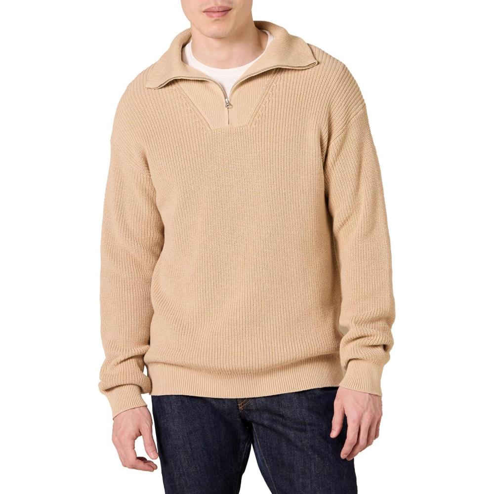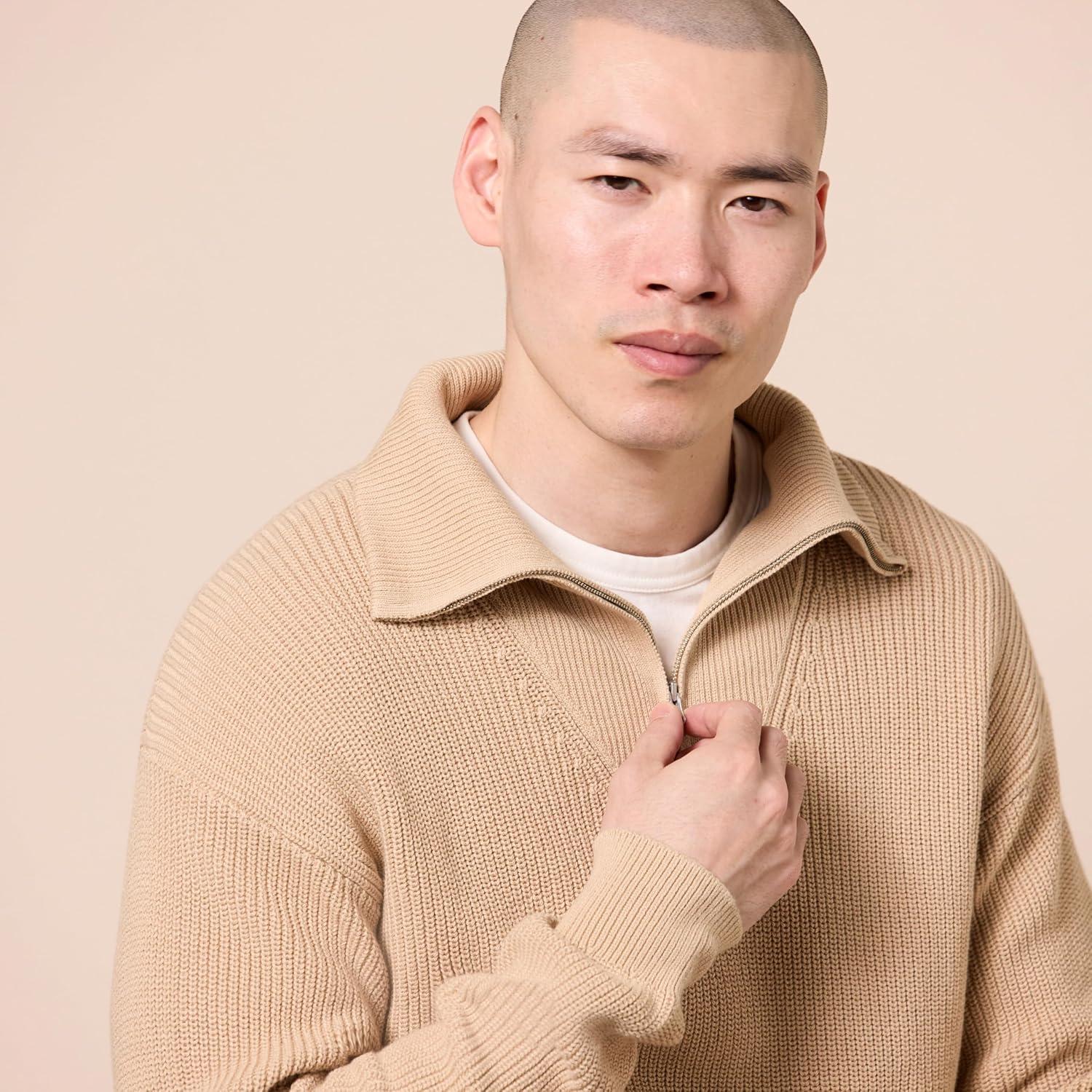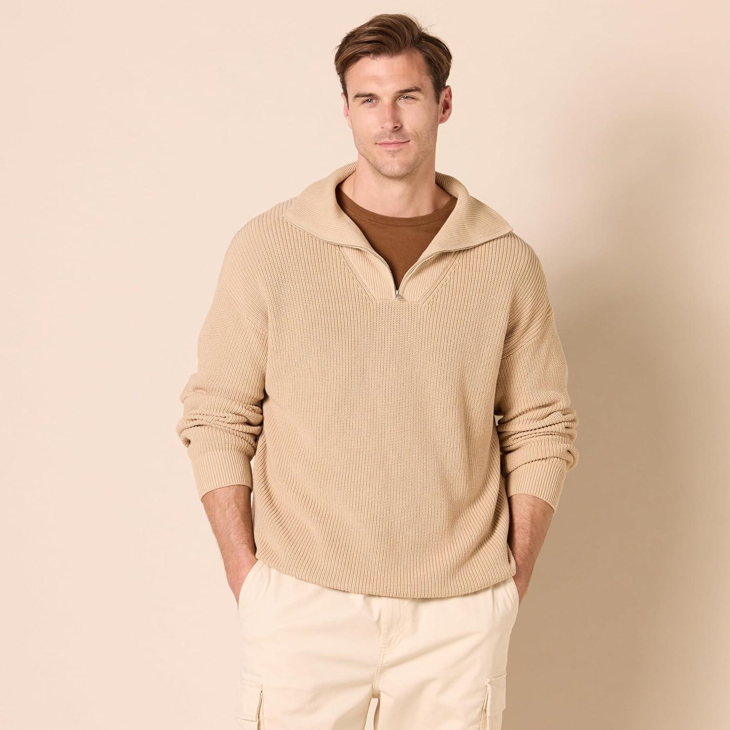 Amazon Essentials Men’s Quarter-Zip Rib-Knit Relaxed-Fit Sweater(Light Camel)