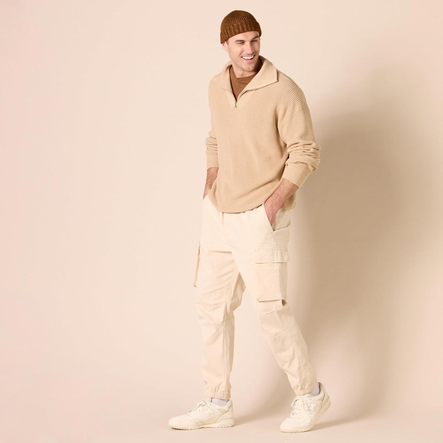 Amazon Essentials Men’s Quarter-Zip Rib-Knit Relaxed-Fit Sweater(Eggshell White)