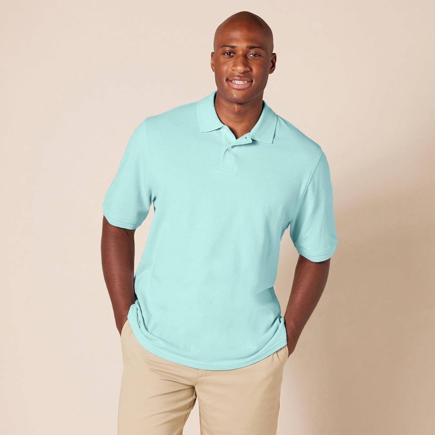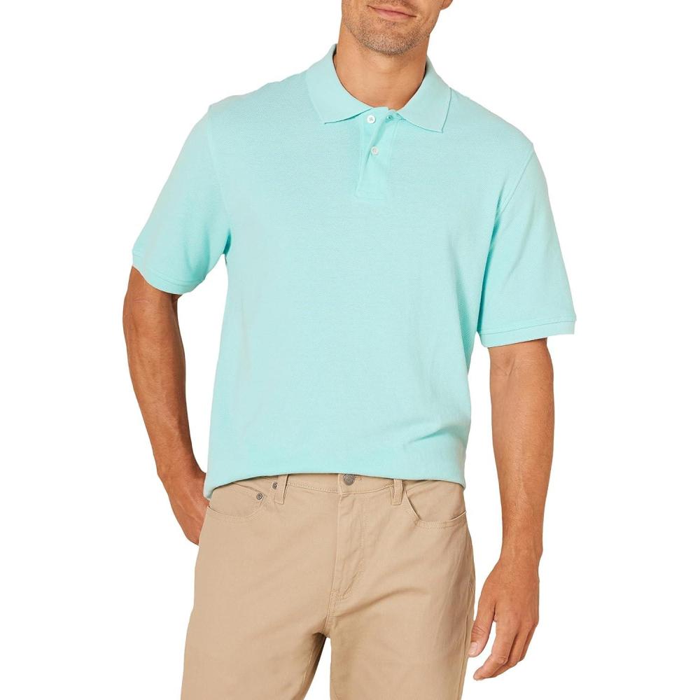 Amazon Essentials Men’s Regular-Fit Cotton Pique Polo Shirt (Available in Big & Tall)(Aqua Blue)