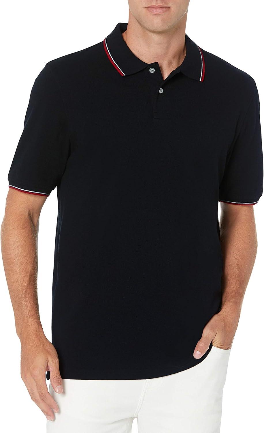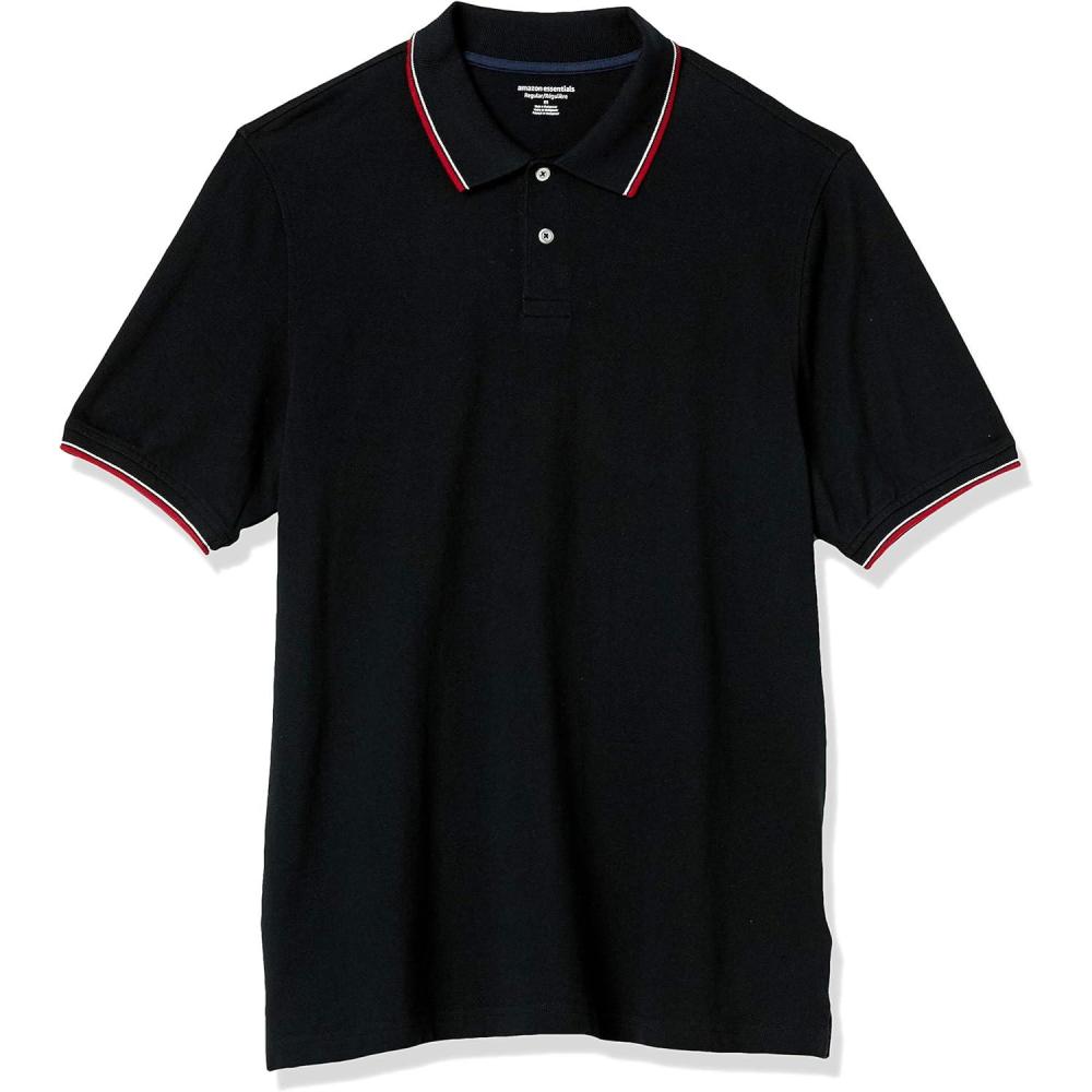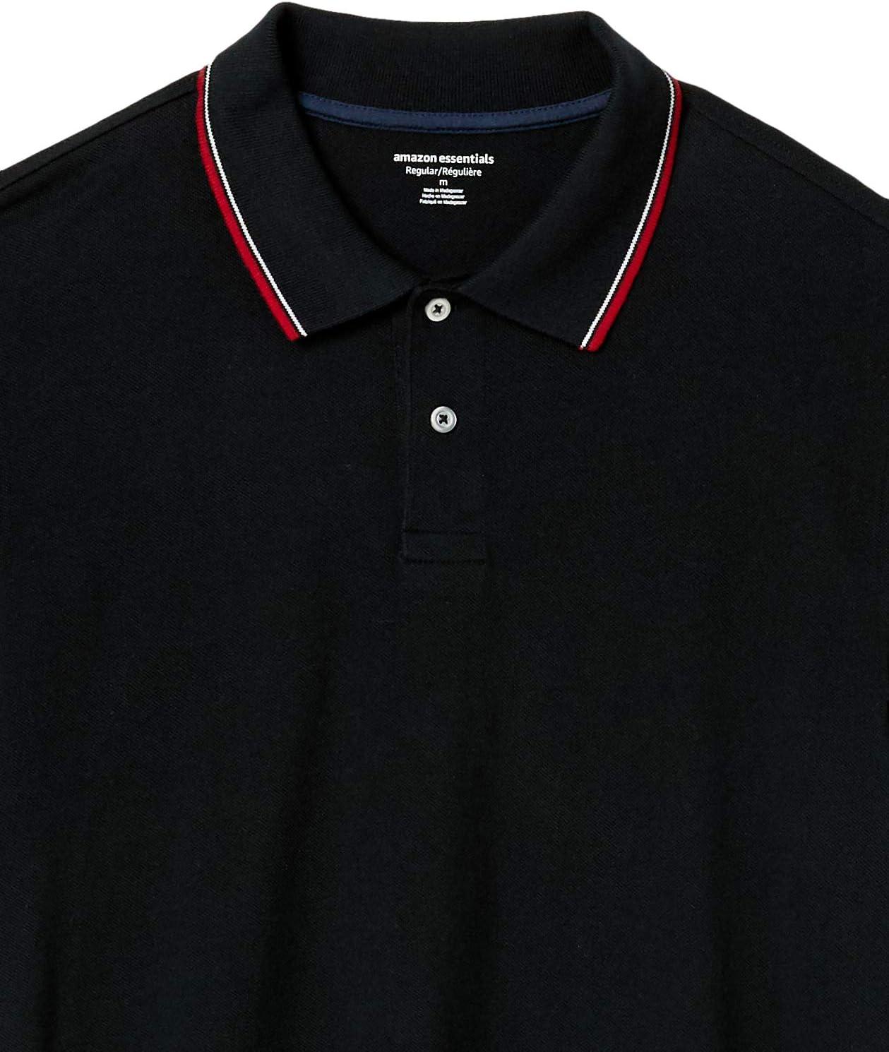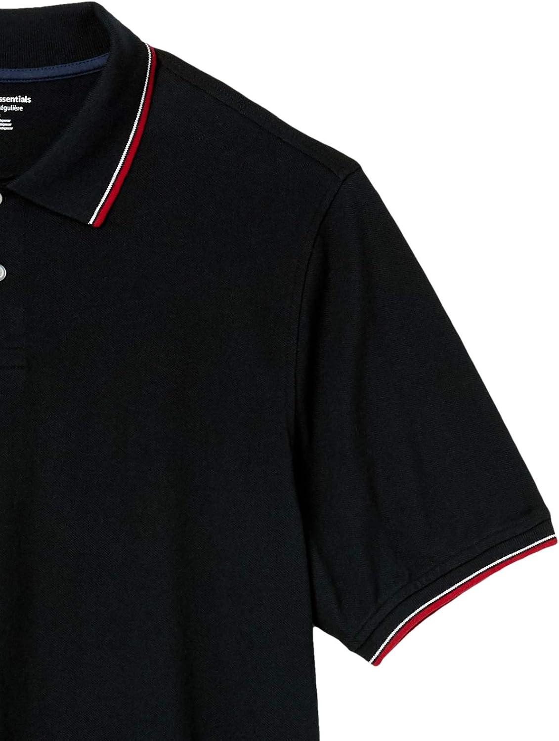 Amazon Essentials Men’s Regular-Fit Cotton Pique Polo Shirt (Available in Big & Tall)(Black Red)