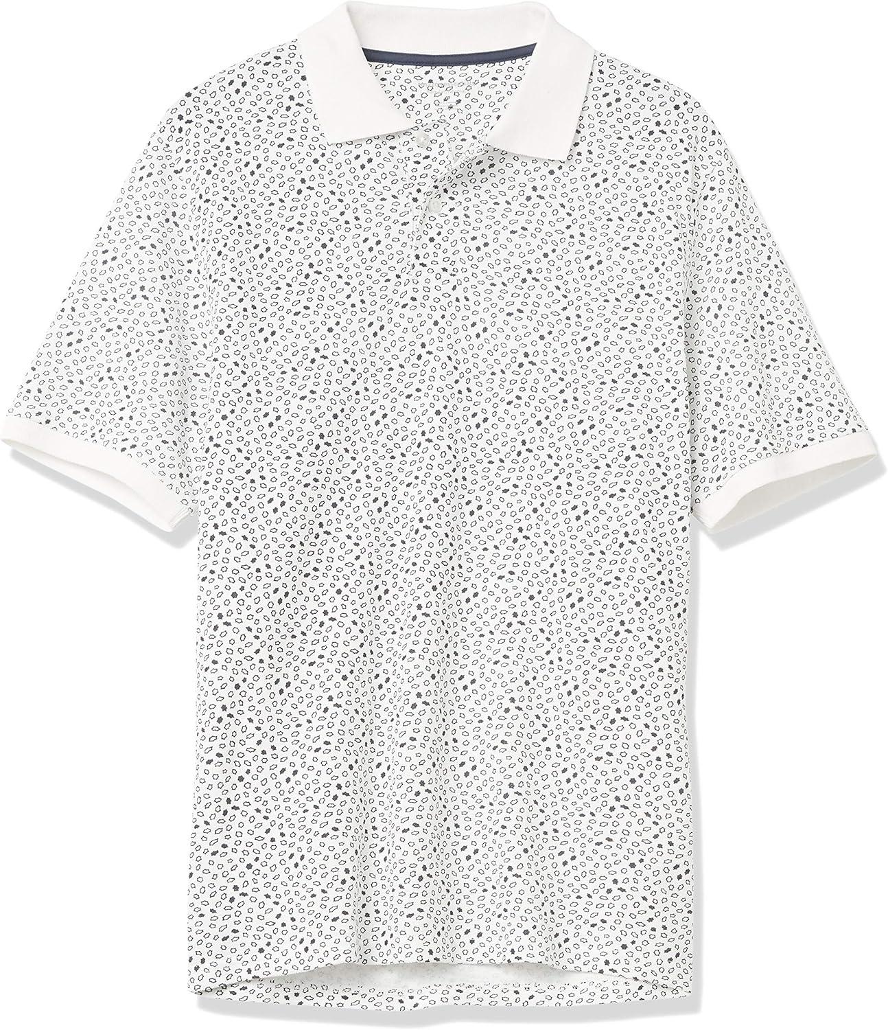 Amazon Essentials Men's Regular-Fit Cotton Pique Polo Shirt (Available in Big & Tall)(Black White Geo Print)