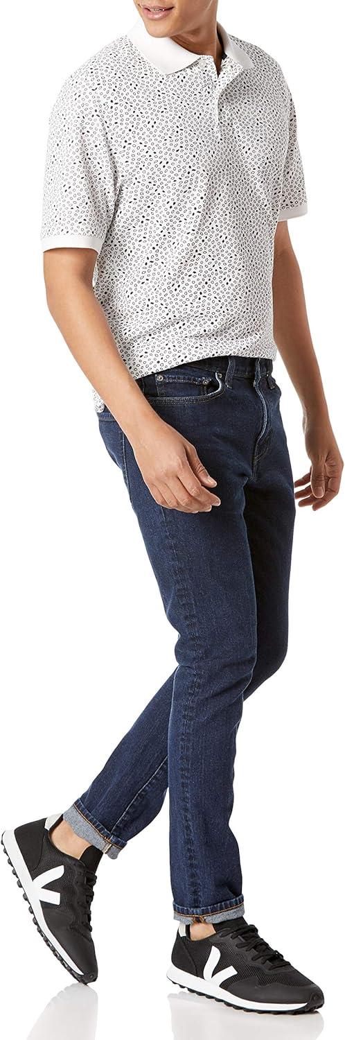Amazon Essentials Men’s Regular-Fit Cotton Pique Polo Shirt (Available in Big & Tall)(Black White Geo Print)