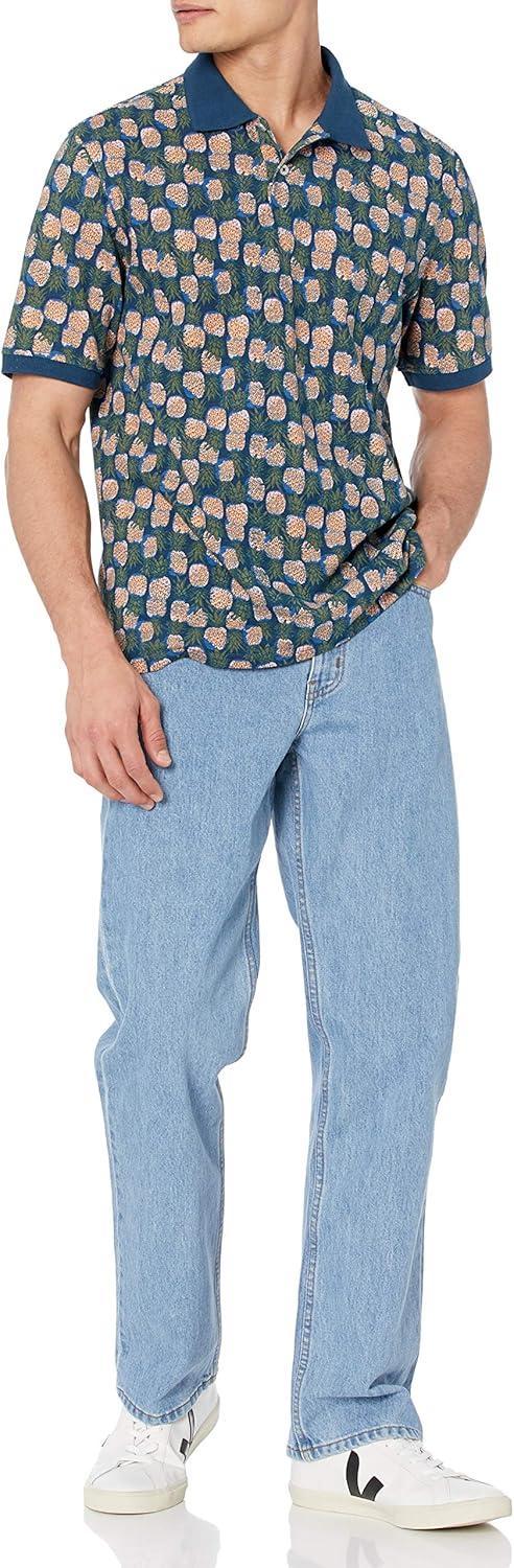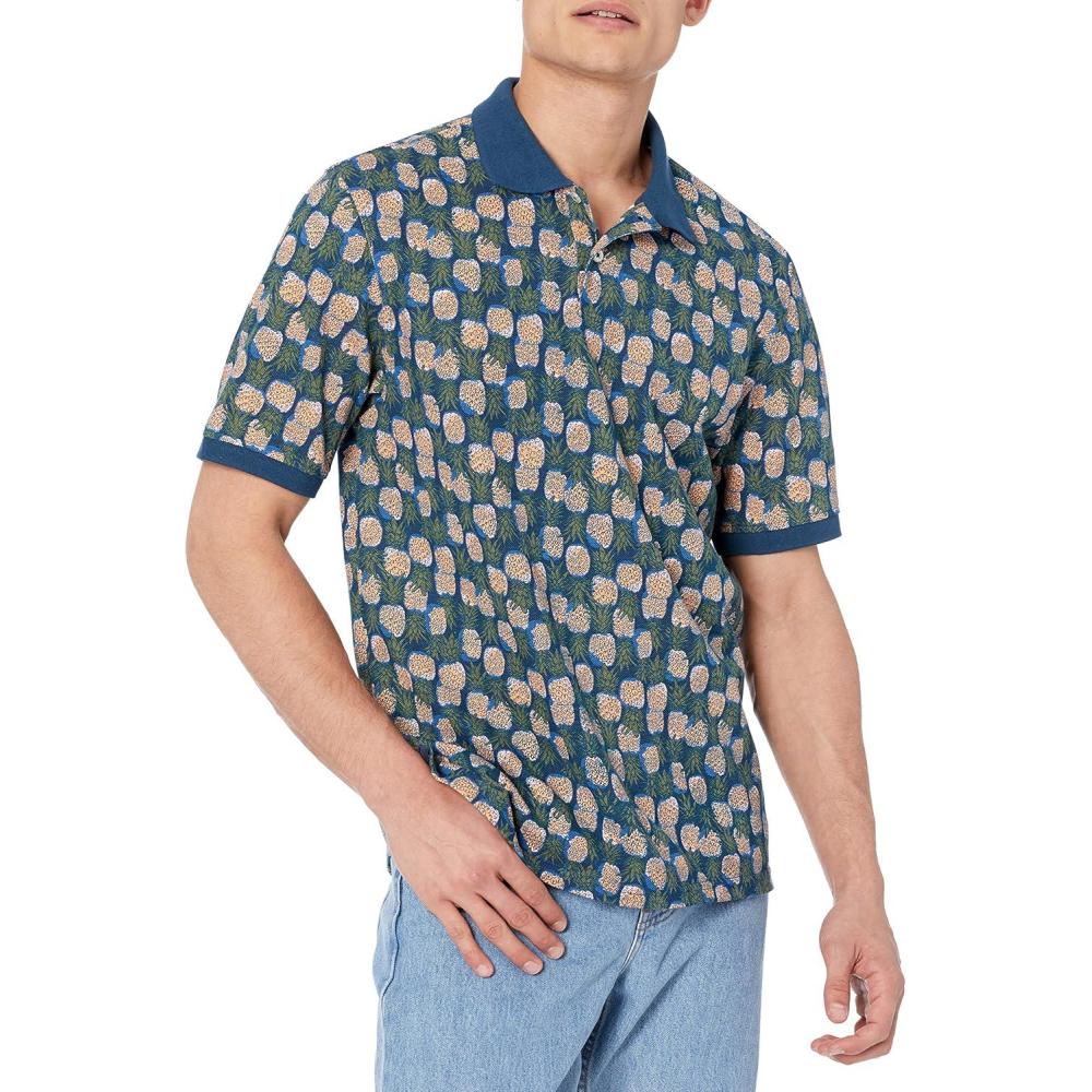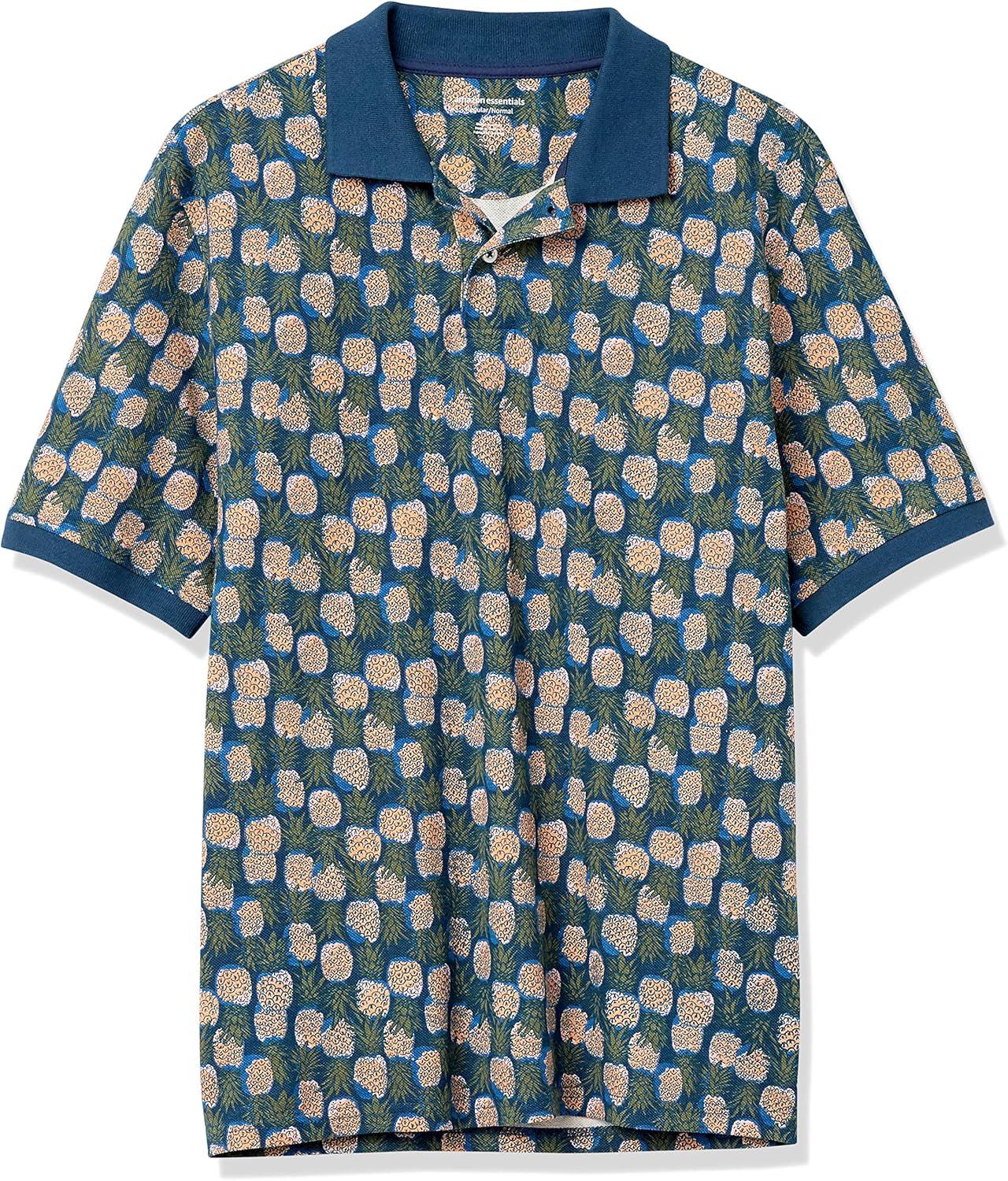 Amazon Essentials Men’s Regular-Fit Cotton Pique Polo Shirt (Available in Big & Tall)(Blue Pineapple)