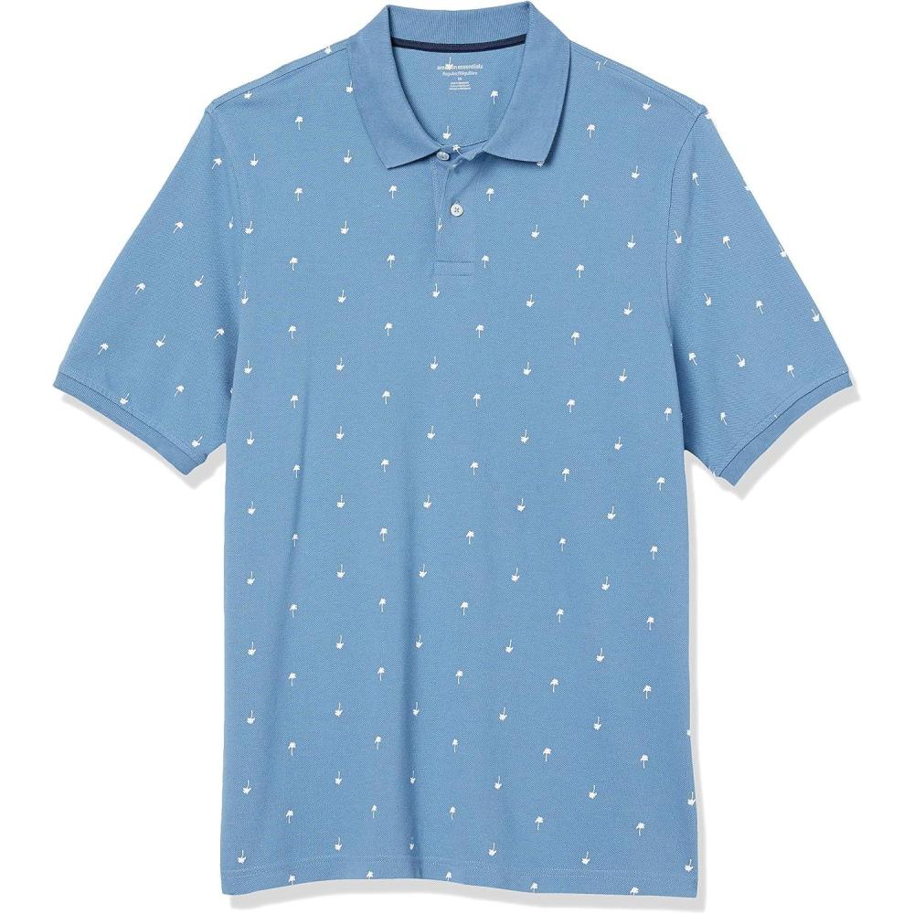 Amazon Essentials Men’s Regular-Fit Cotton Pique Polo Shirt (Available in Big & Tall)(Blue White Palm Tree Print)
