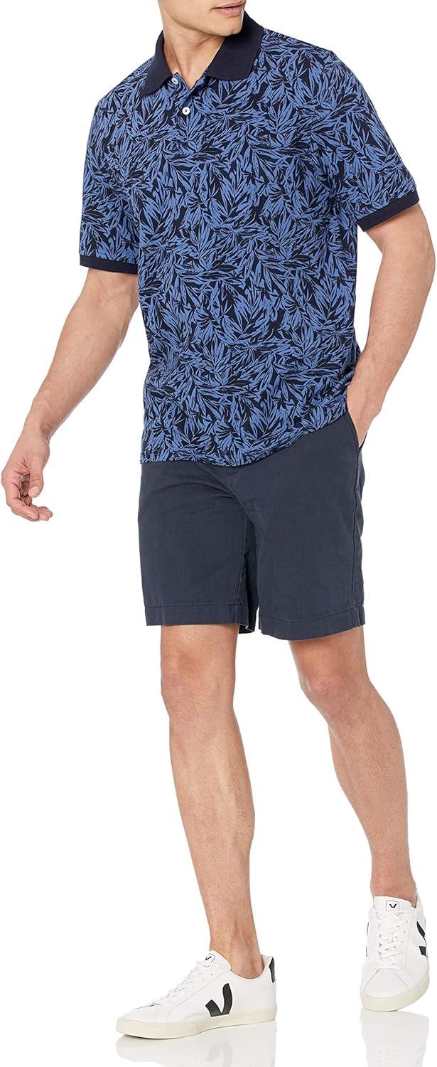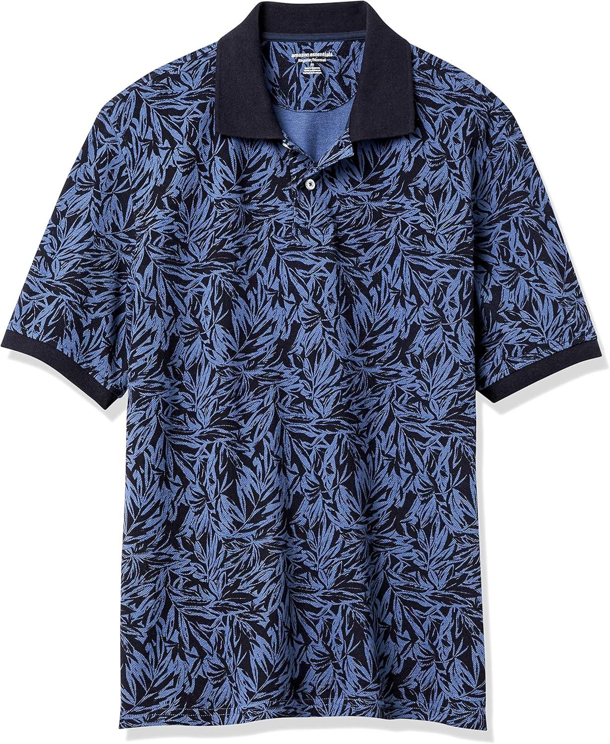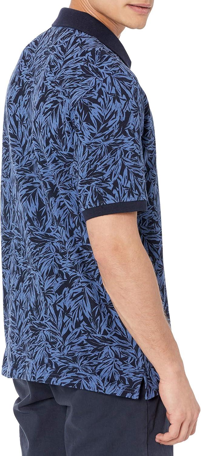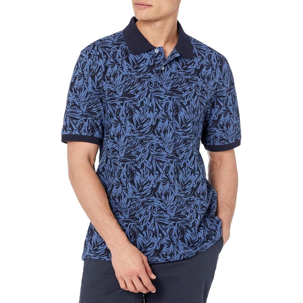 Amazon Essentials Men’s Regular-Fit Cotton Pique Polo Shirt (Available in Big & Tall)(Indigo Palm Leaf Print)