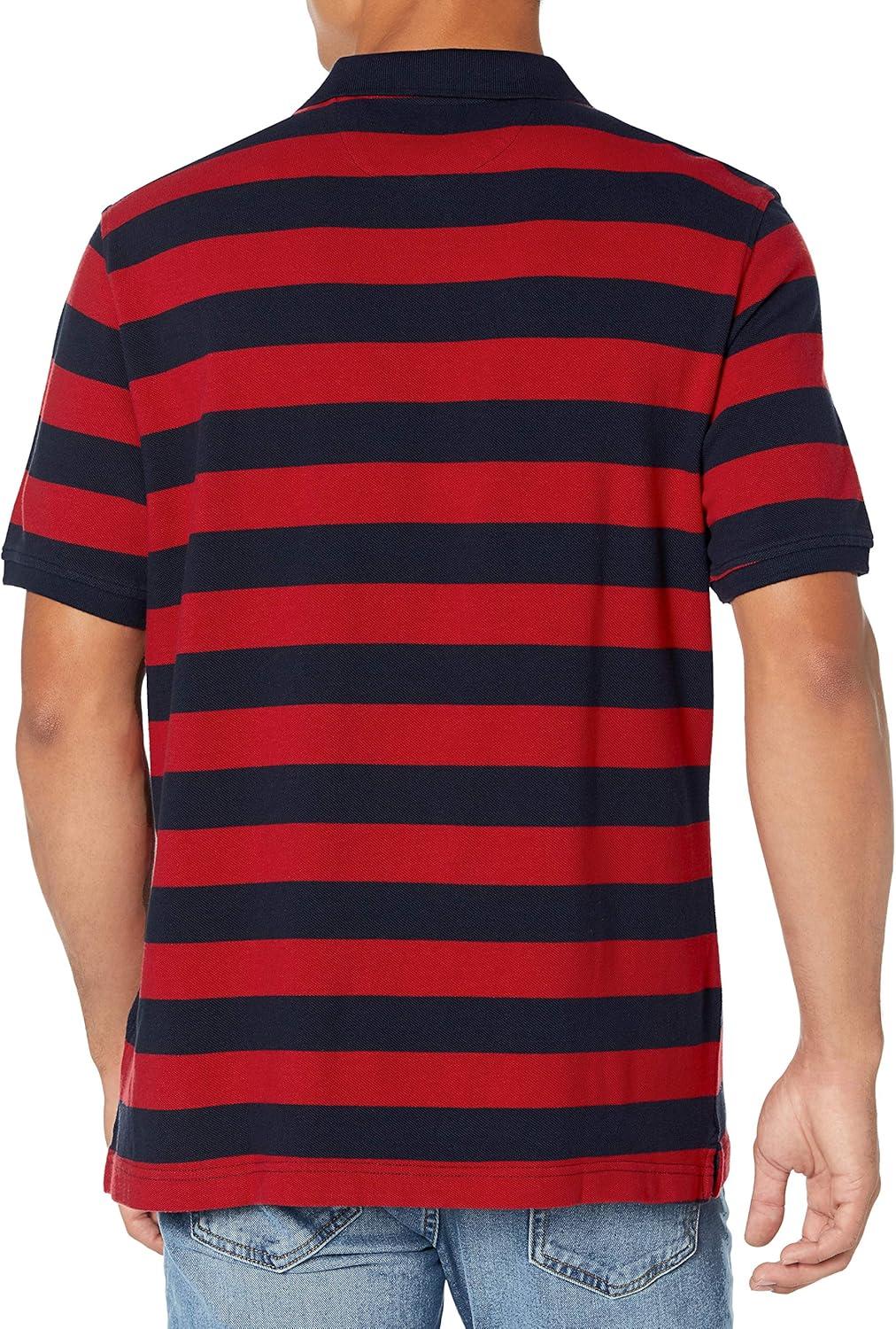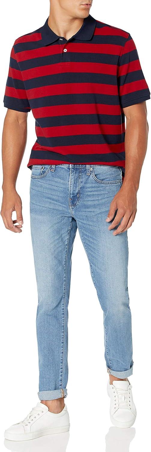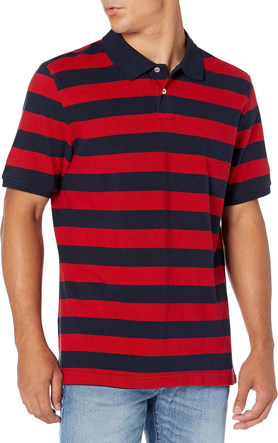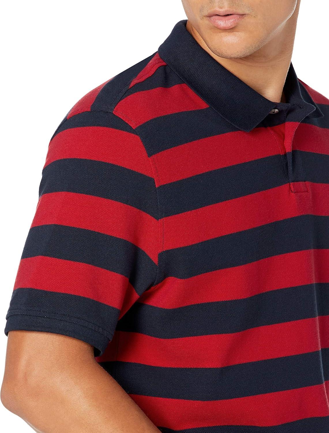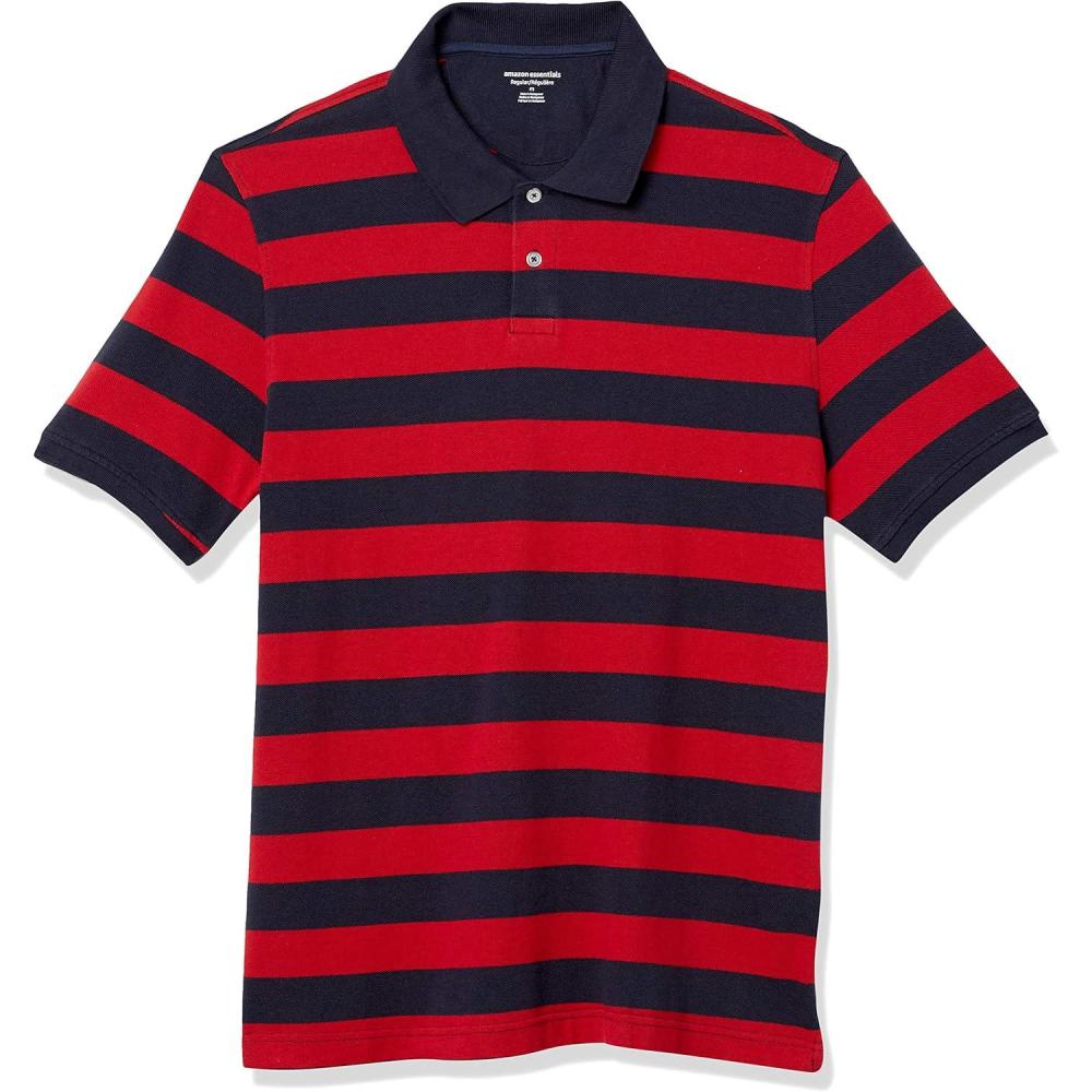 Amazon Essentials Men’s Regular-Fit Cotton Pique Polo Shirt (Available in Big & Tall)(Navy Red Rugby Stripe)