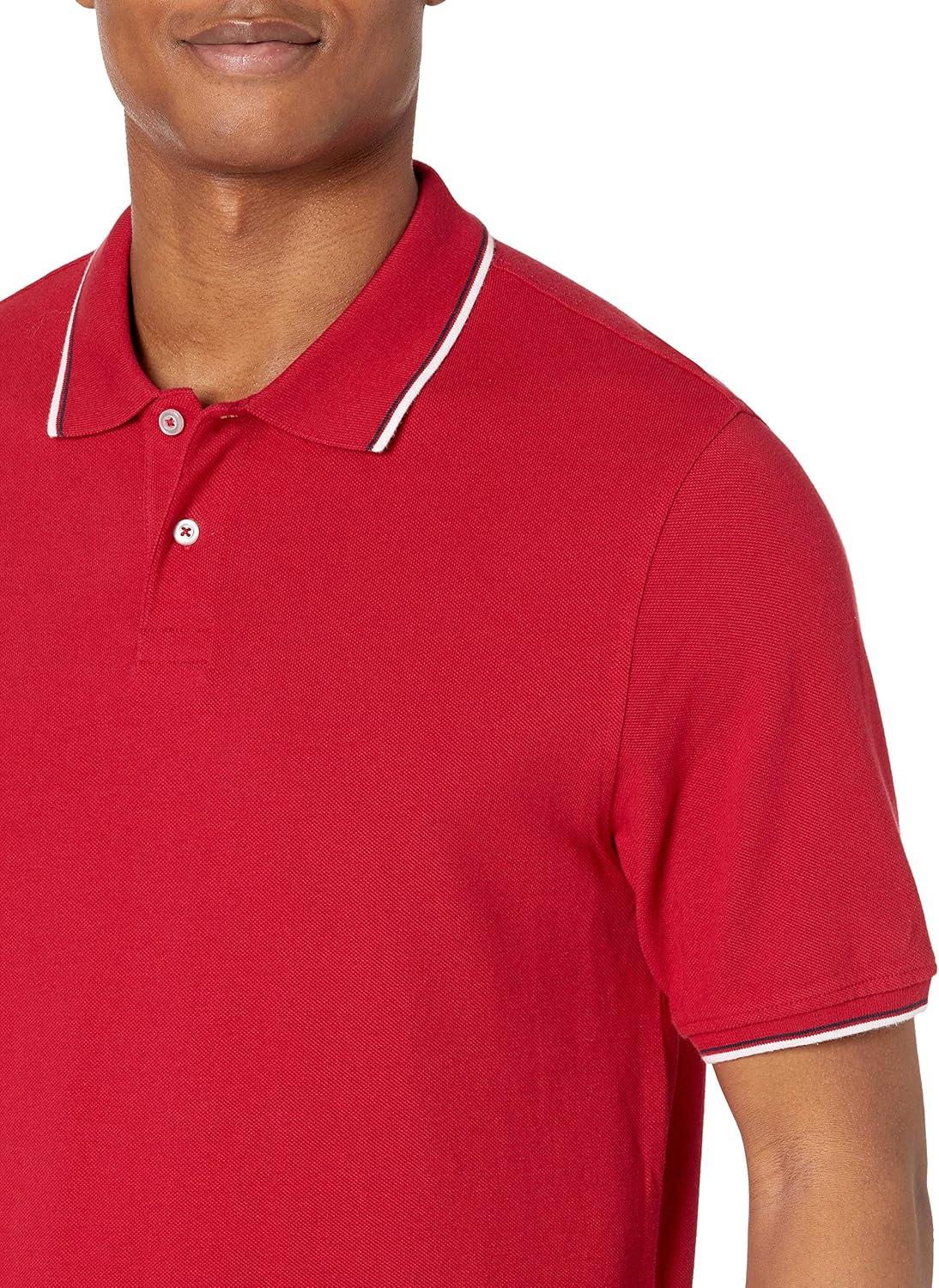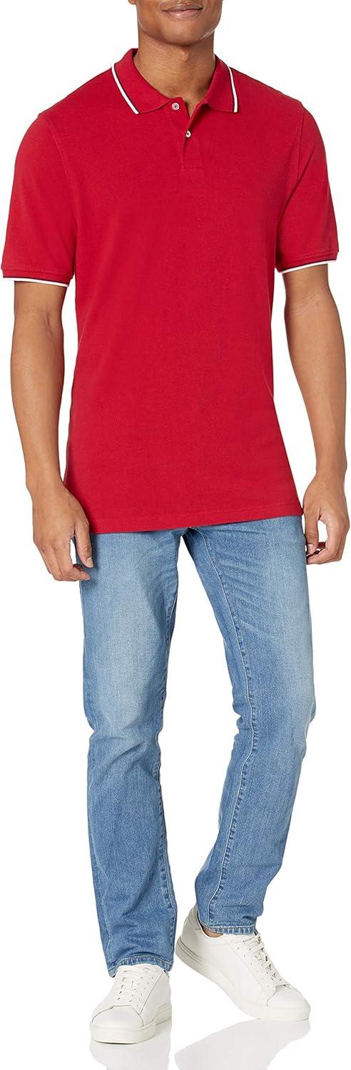 Amazon Essentials Men’s Regular-Fit Cotton Pique Polo Shirt (Available in Big & Tall)(Red Twin Stripe)