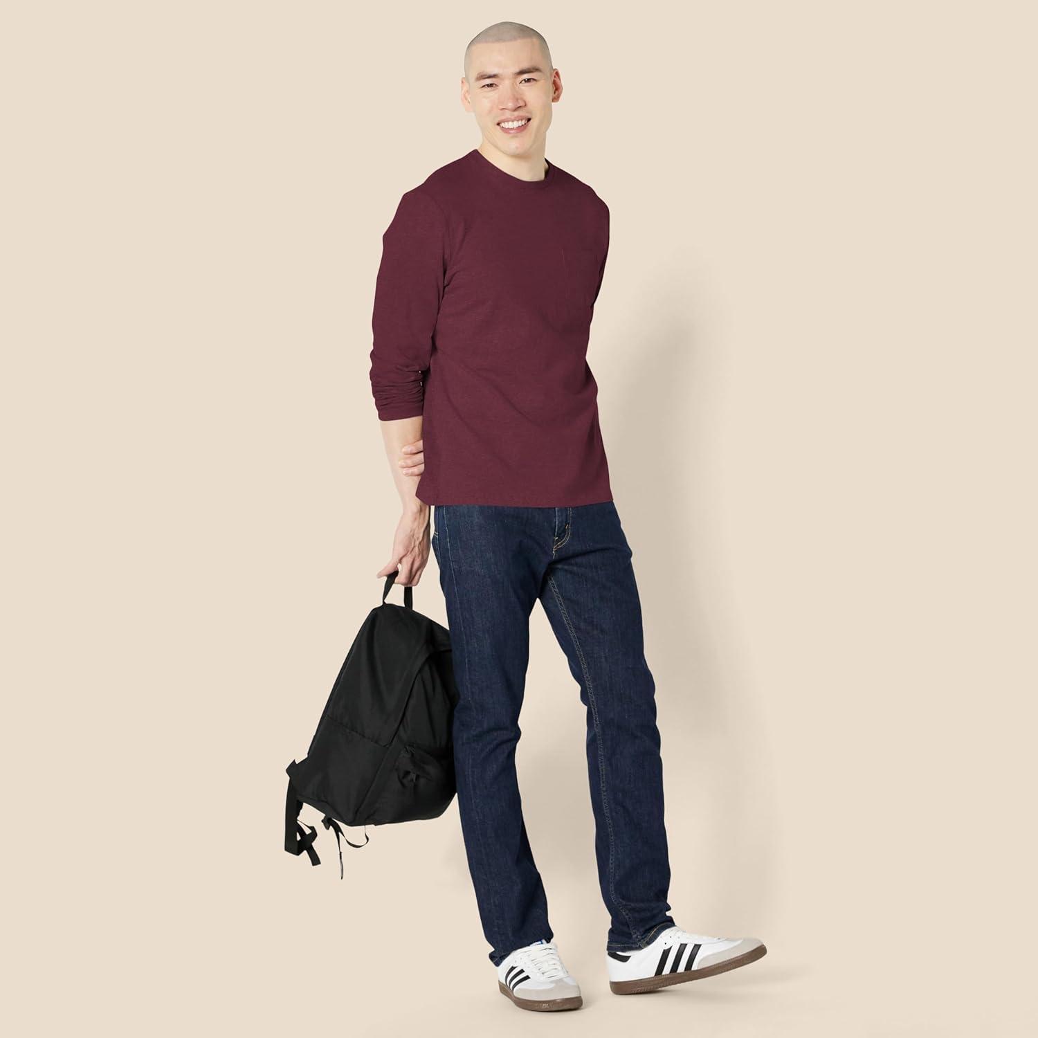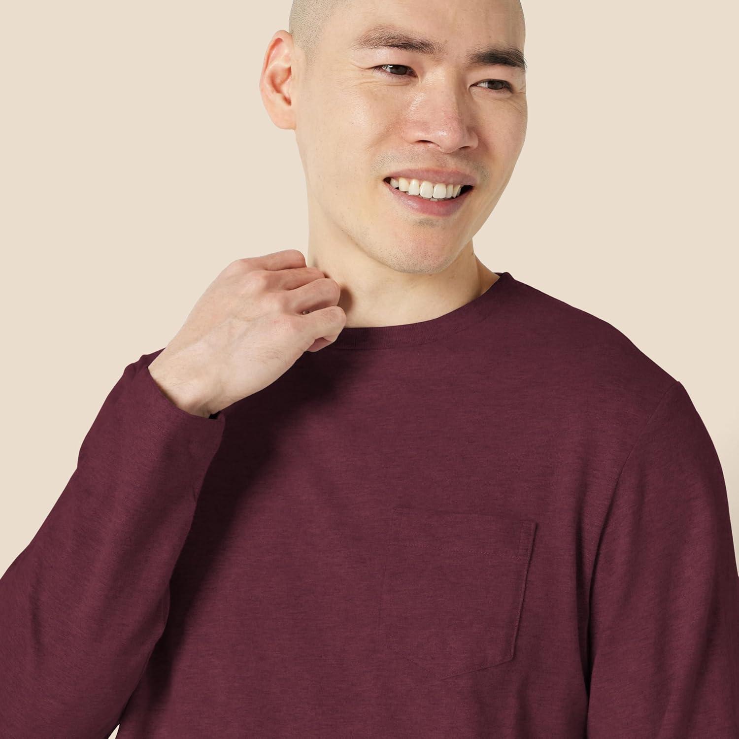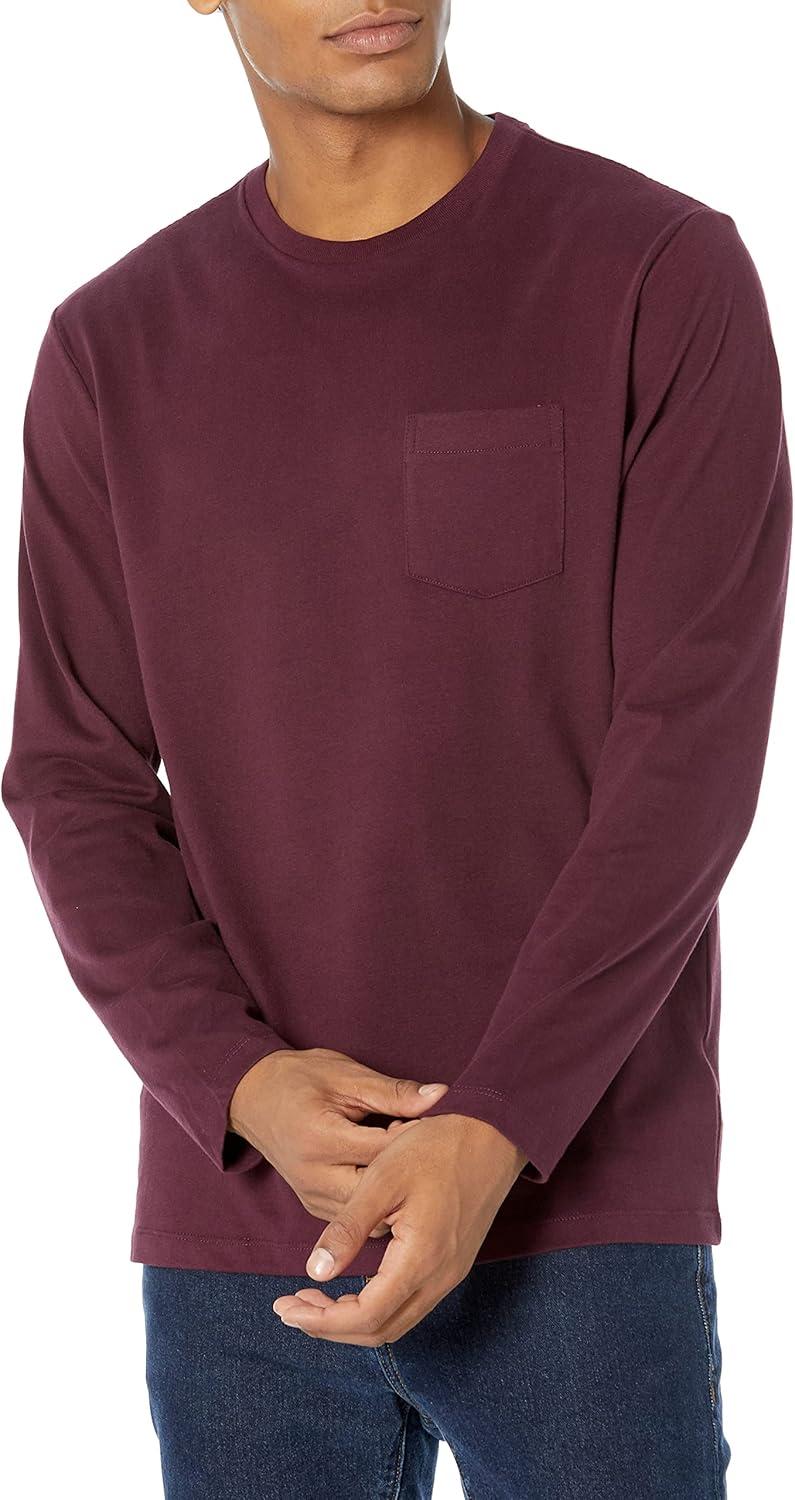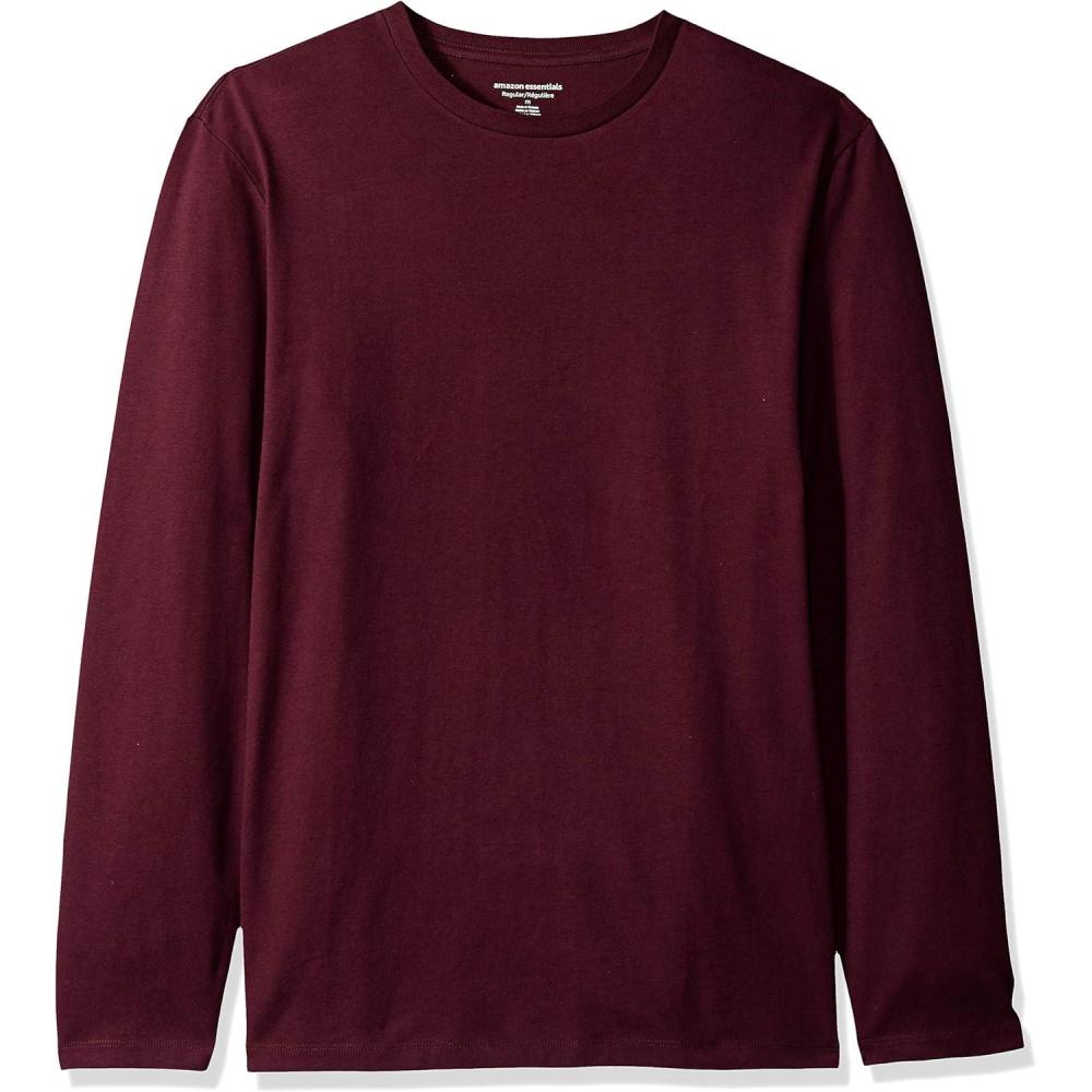 Amazon Essentials Men’s Regular-Fit Crewneck T-Shirts, Long-Sleeve(Burgundy)