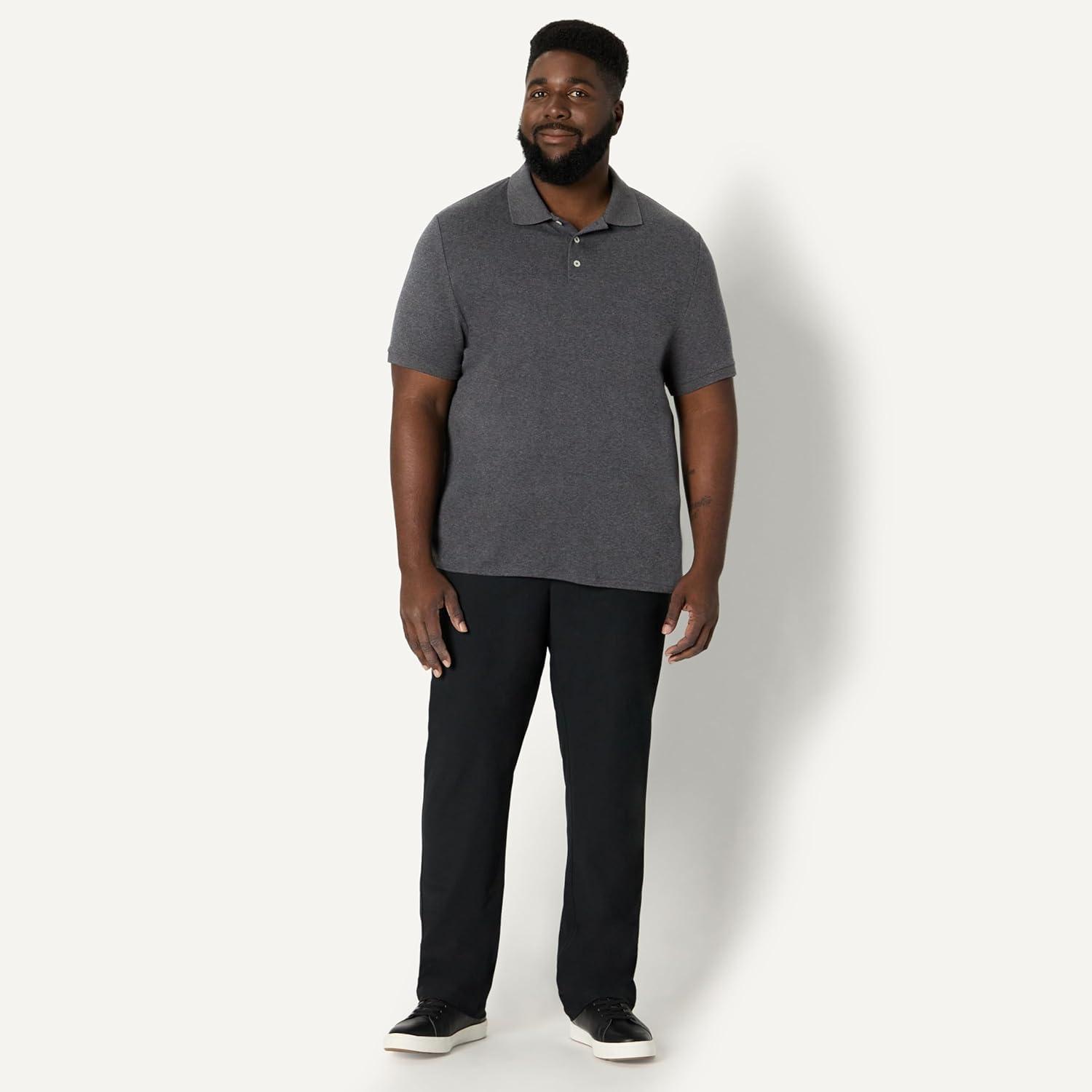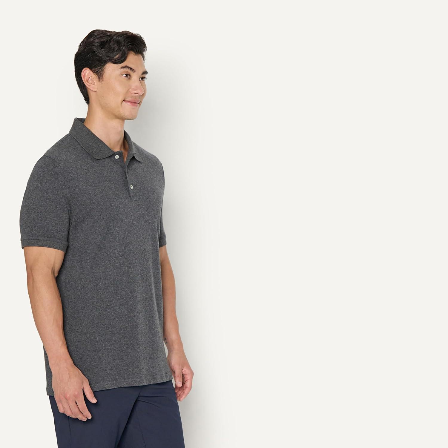 Amazon Essentials Men’s Regular Fit Interlock Polo Shirt(Charcoal Heather)