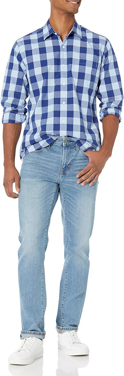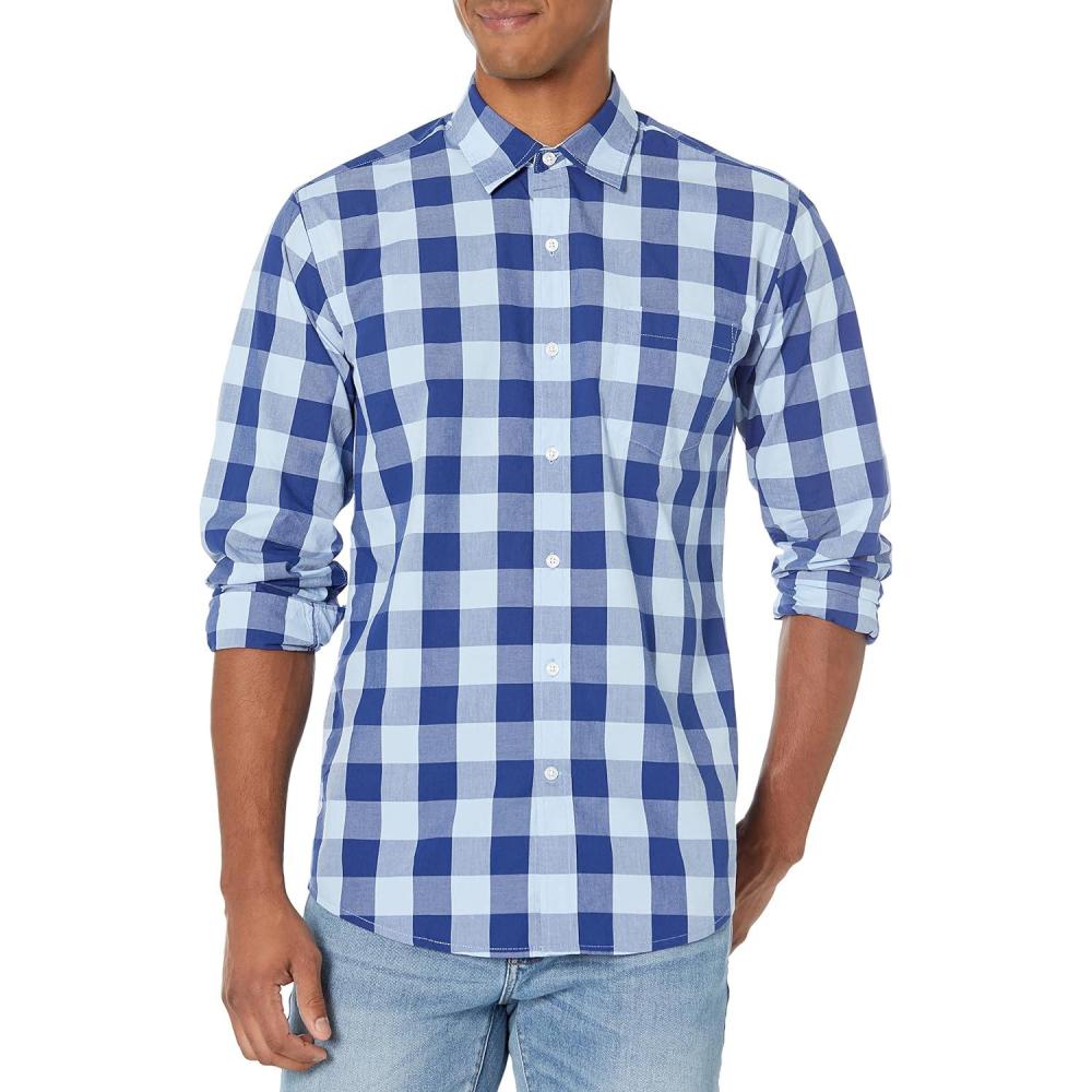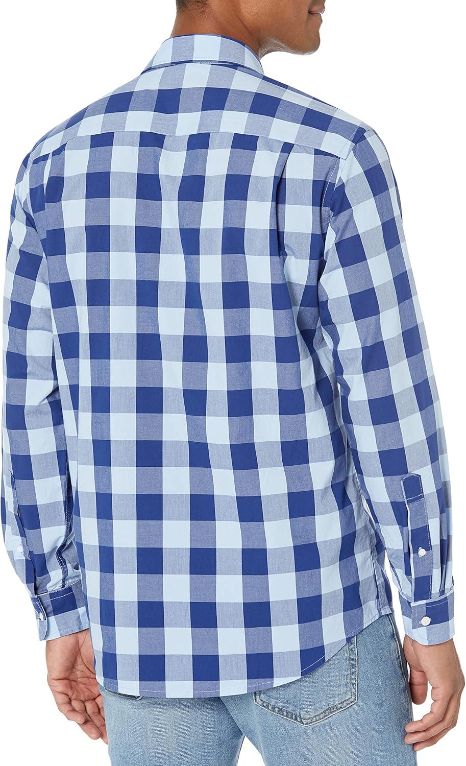 Amazon Essentials Men’s Regular-Fit Long-Sleeve Casual Poplin Shirt(Blue Checks)