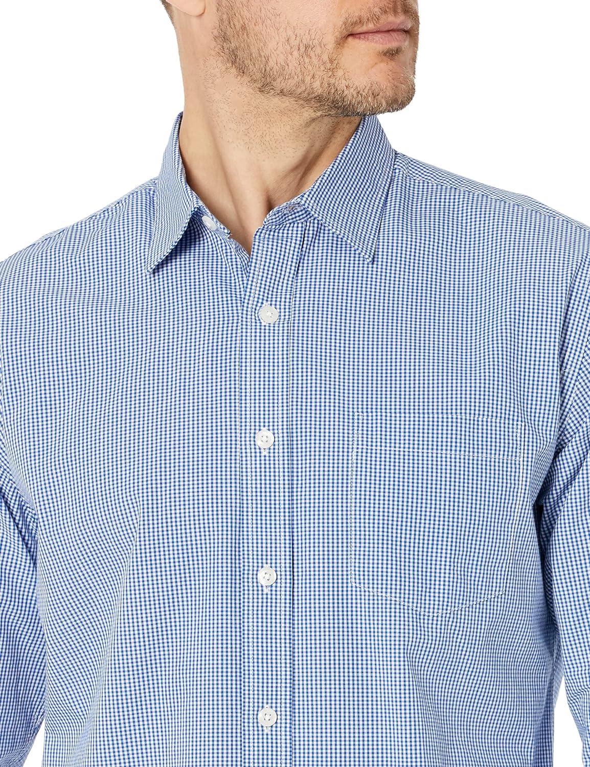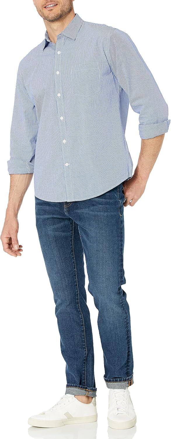 Amazon Essentials Men’s Regular-Fit Long-Sleeve Casual Poplin Shirt(Blue Gingham)