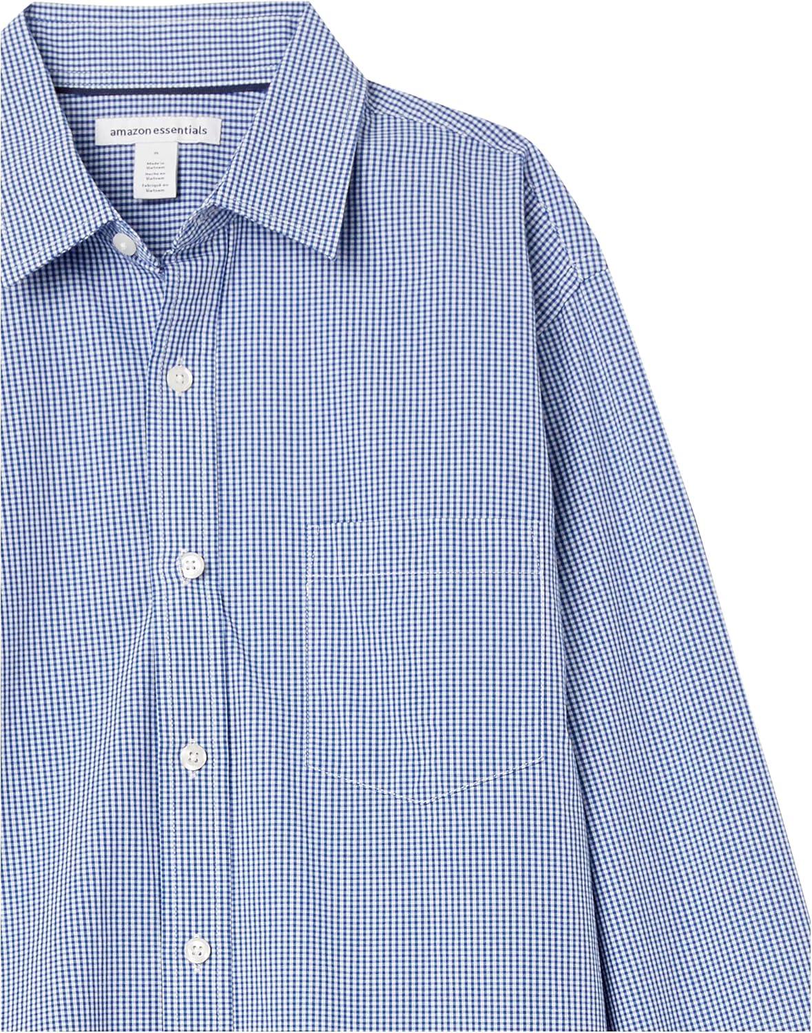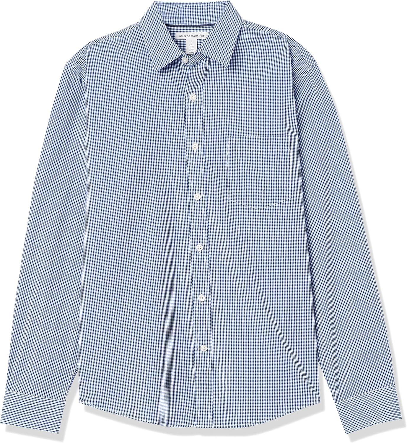 Amazon Essentials Men's Regular-Fit Long-Sleeve Casual Poplin Shirt(Blue Gingham)