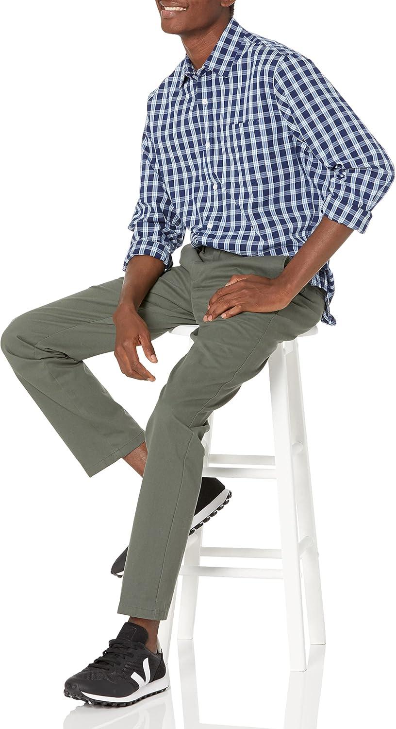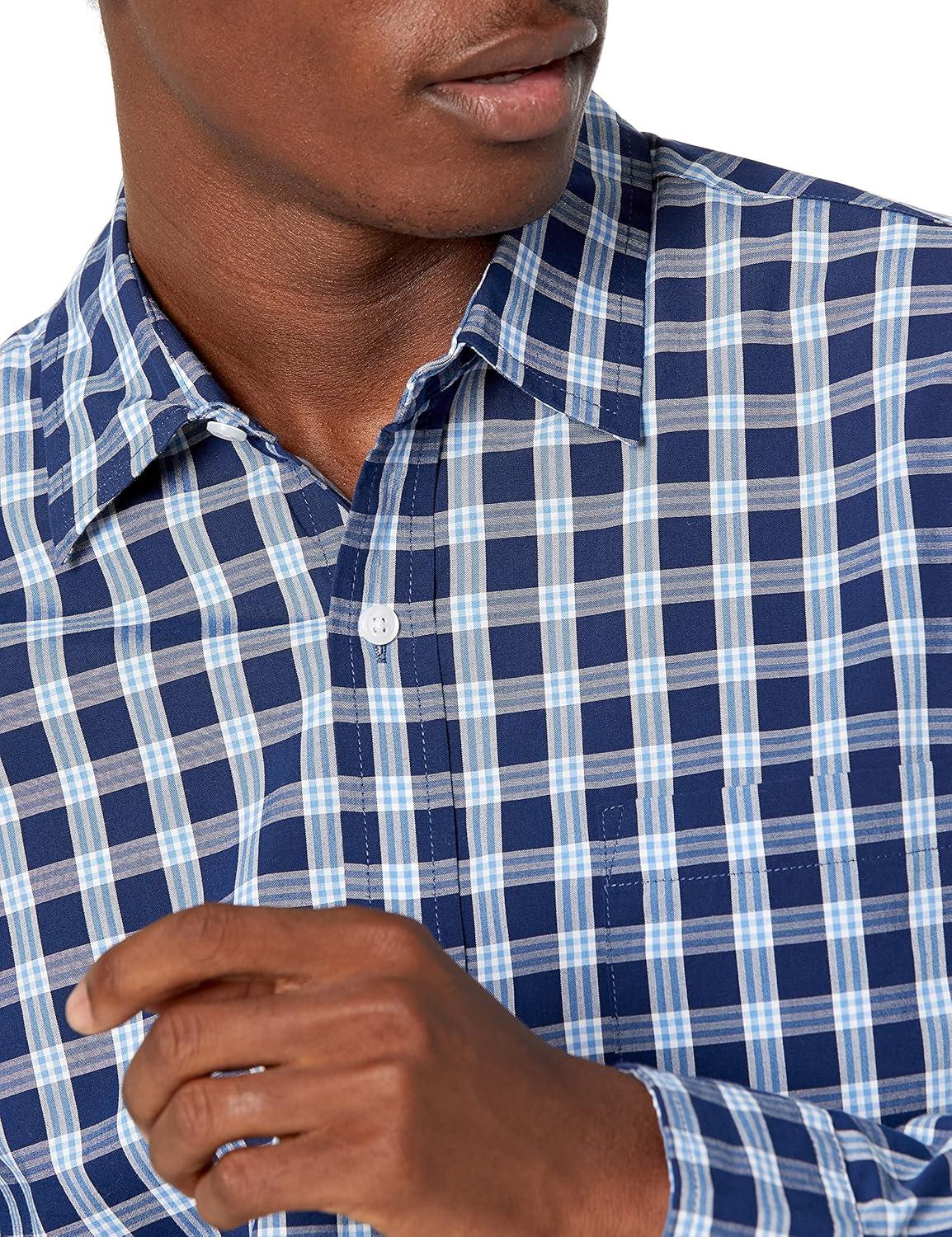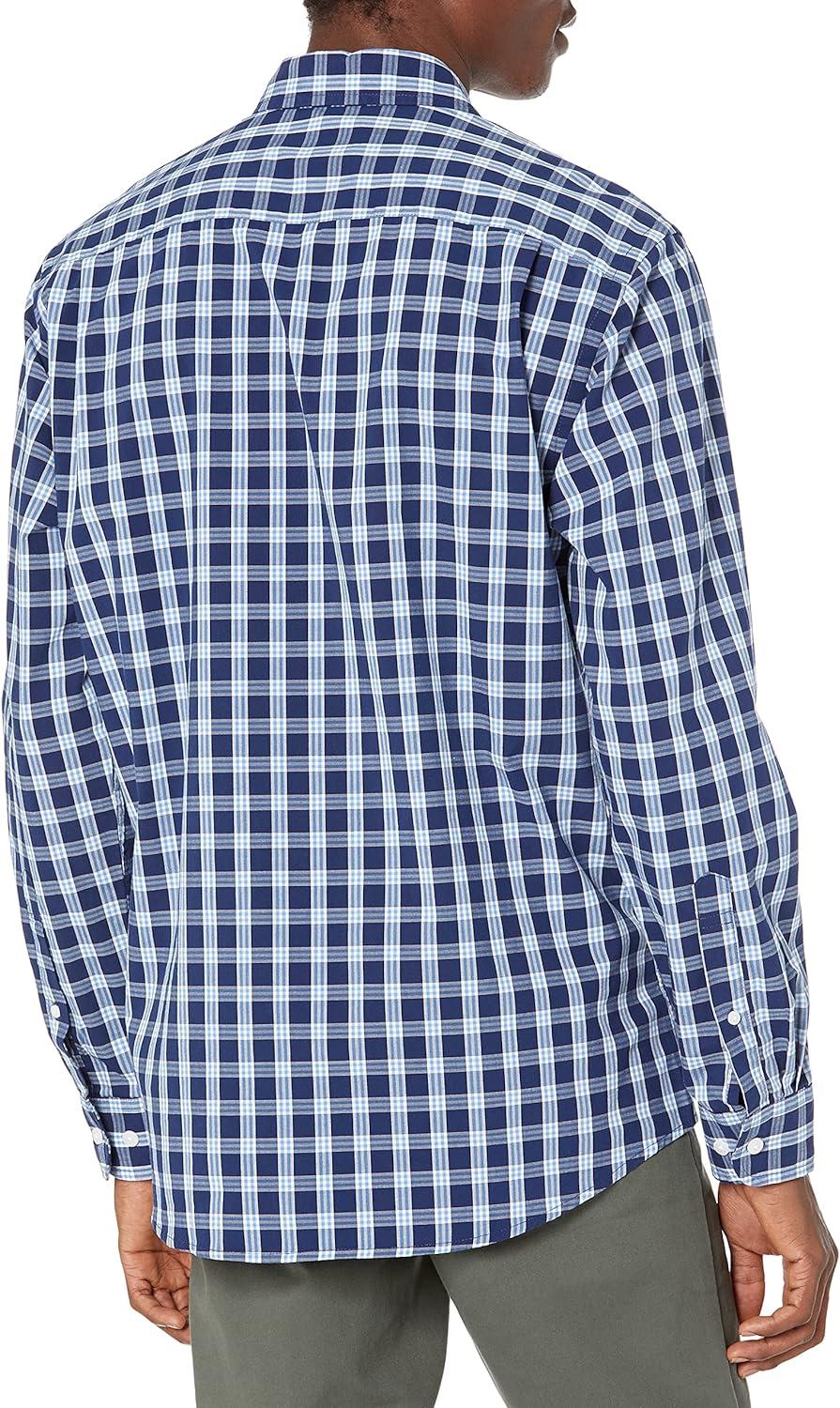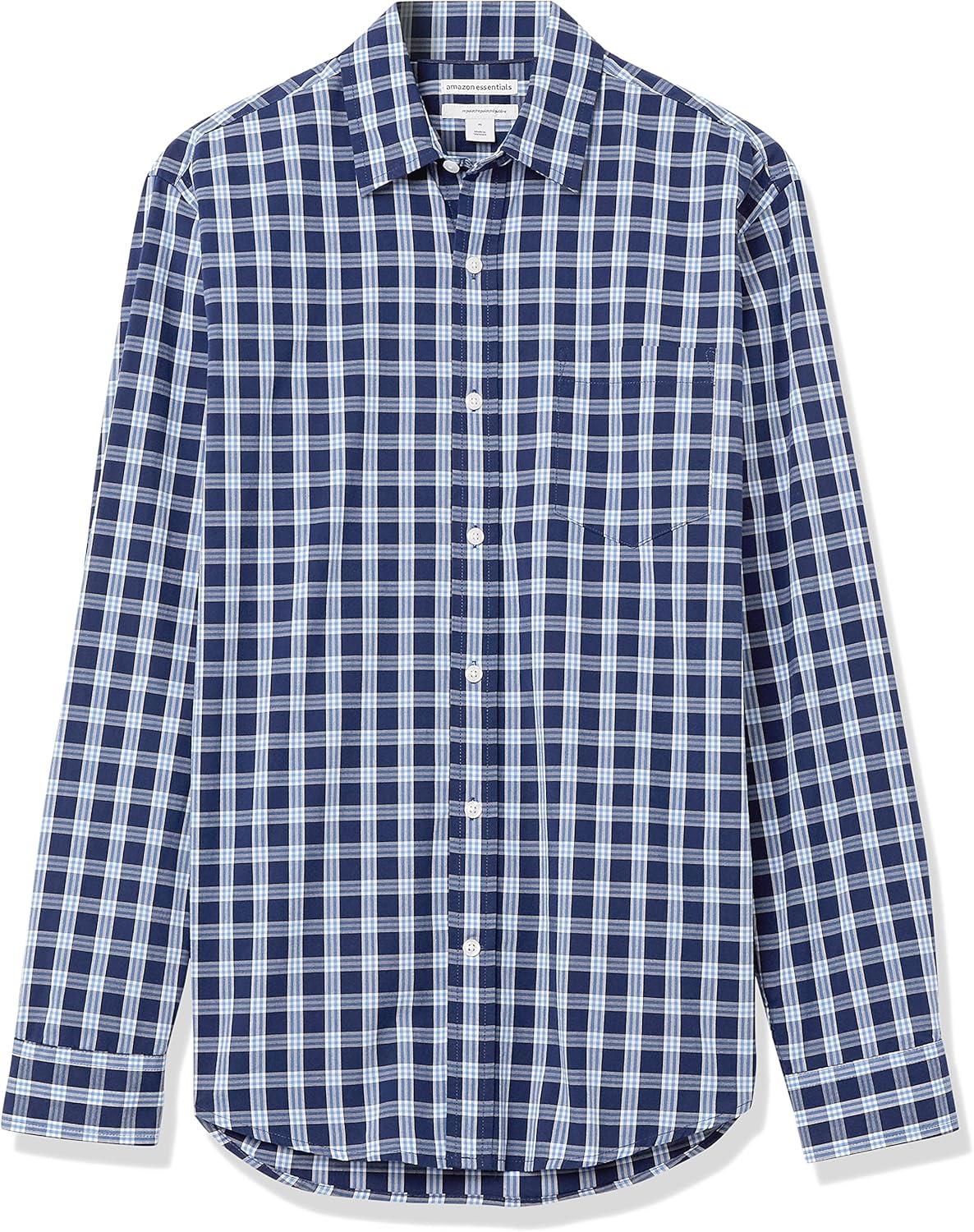 Amazon Essentials Men’s Regular-Fit Long-Sleeve Casual Poplin Shirt(Blue Plaid)