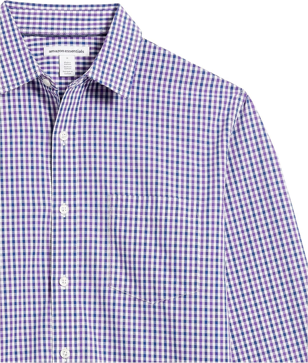 Amazon Essentials Men's Regular-Fit Long-Sleeve Casual Poplin Shirt(Blue Purple Gingham)