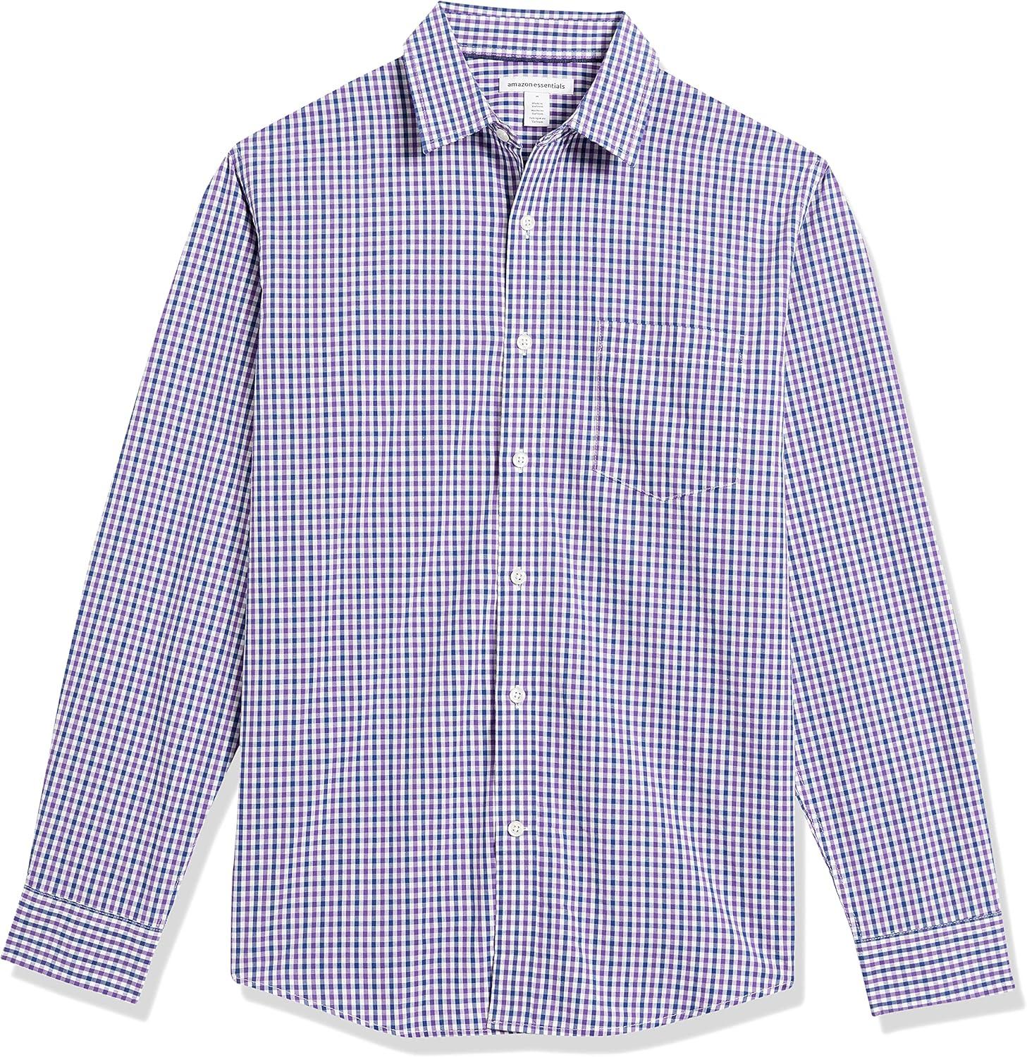 Amazon Essentials Men’s Regular-Fit Long-Sleeve Casual Poplin Shirt(Blue Purple Gingham)
