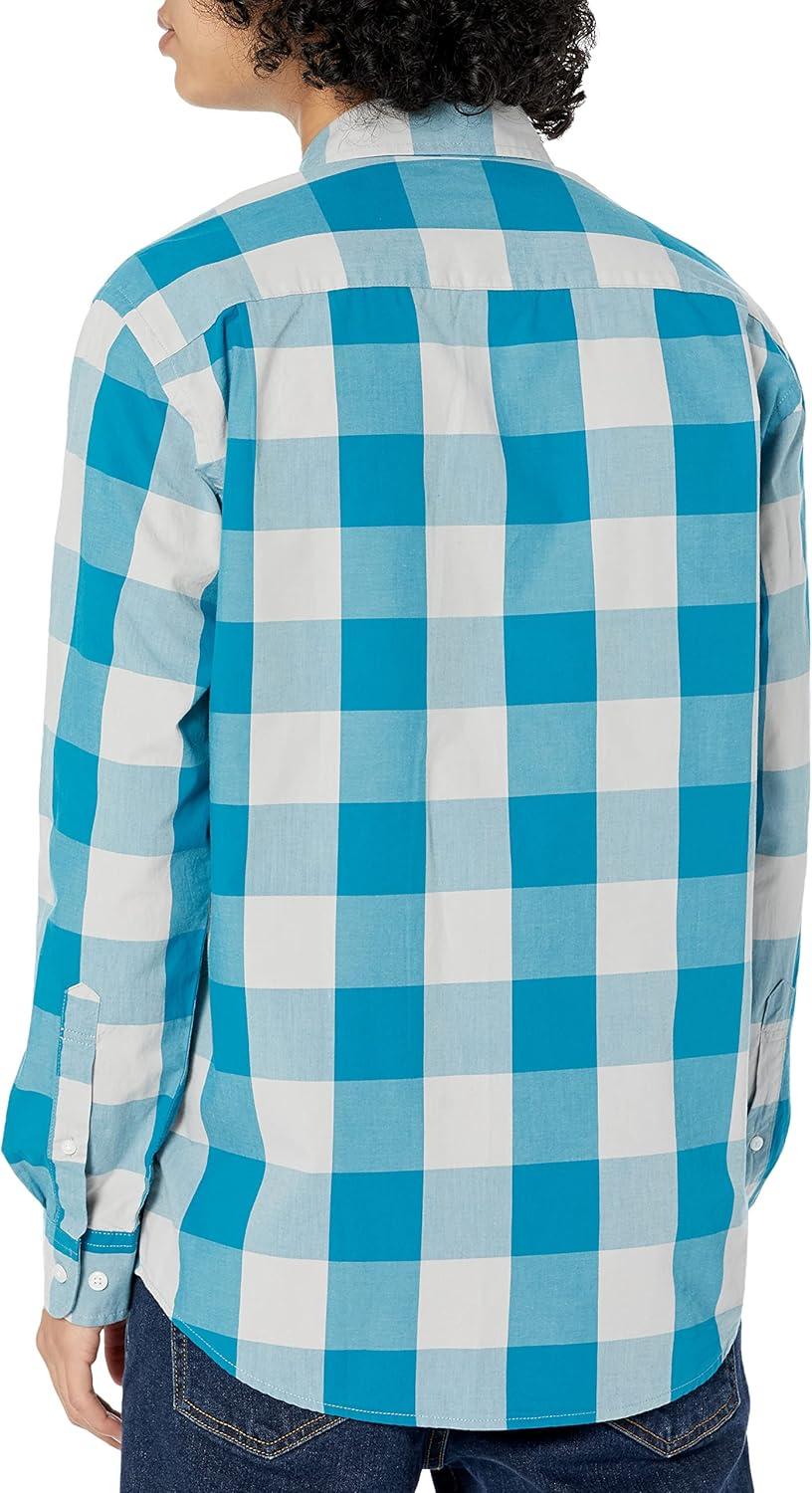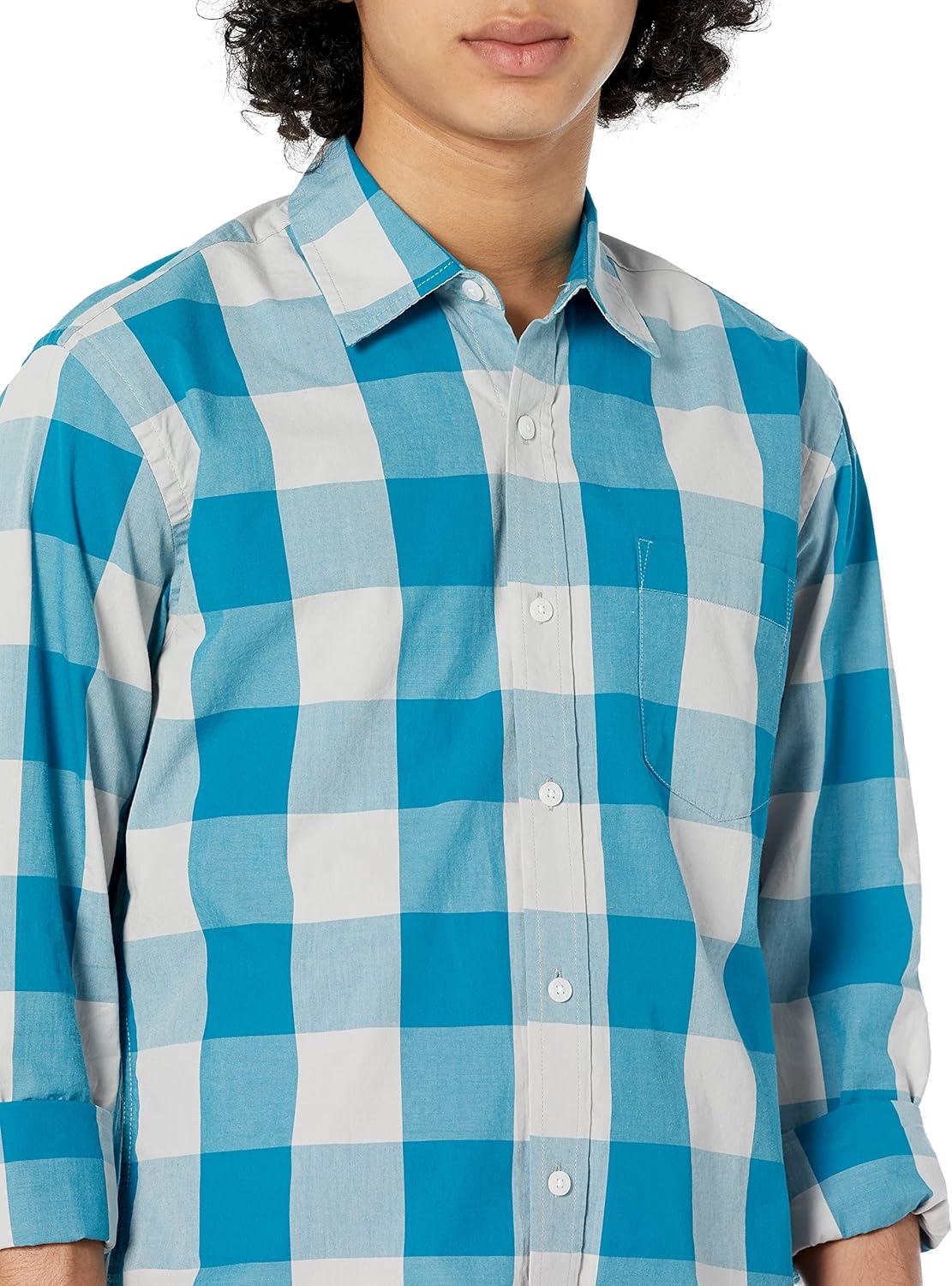 Amazon Essentials Men's Regular-Fit Long-Sleeve Casual Poplin Shirt(Blue White Buffalo Plaid)
