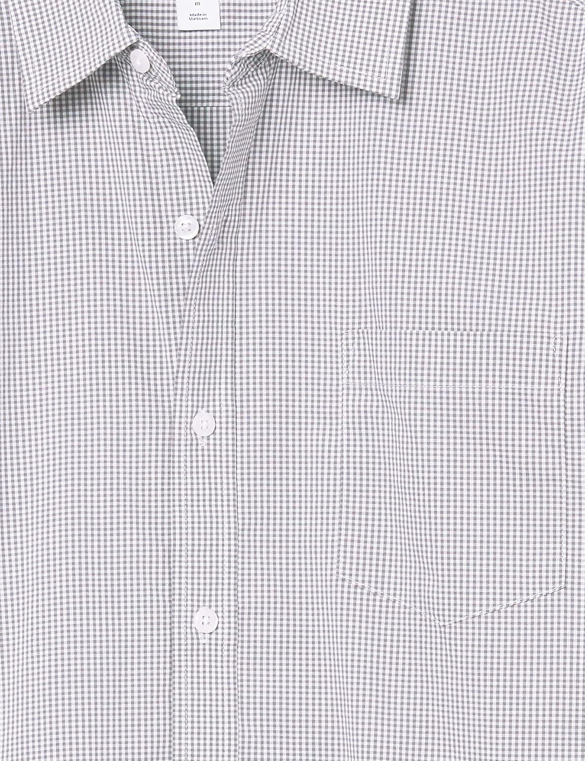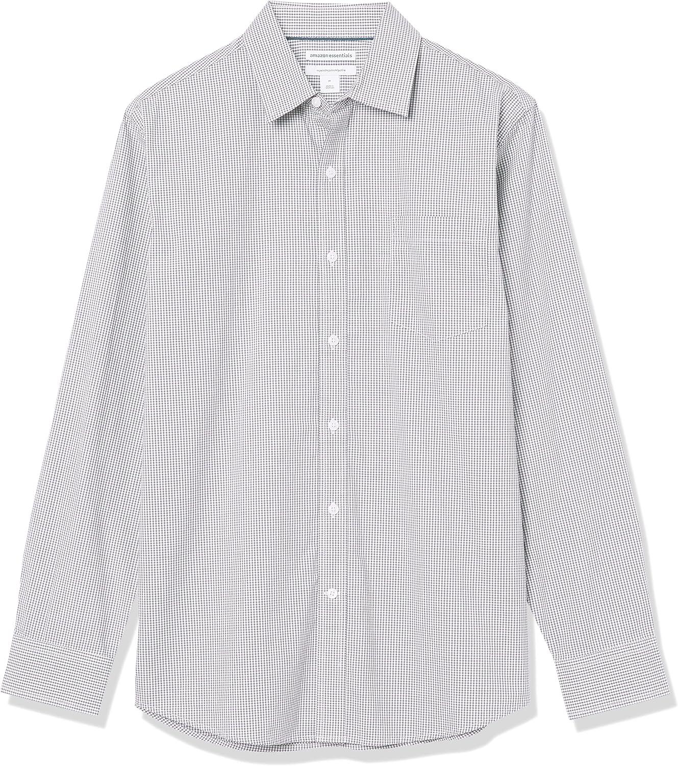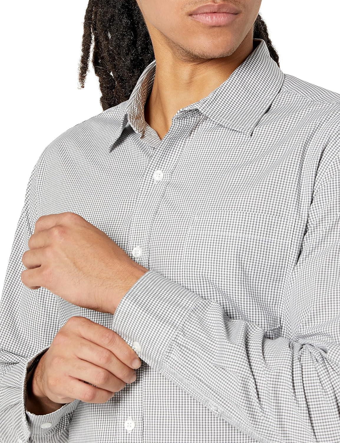 Amazon Essentials Men’s Regular-Fit Long-Sleeve Casual Poplin Shirt(Grey Gingham)