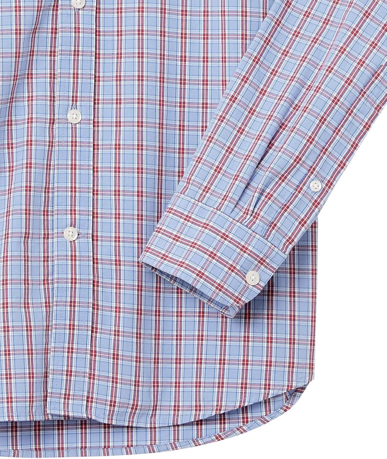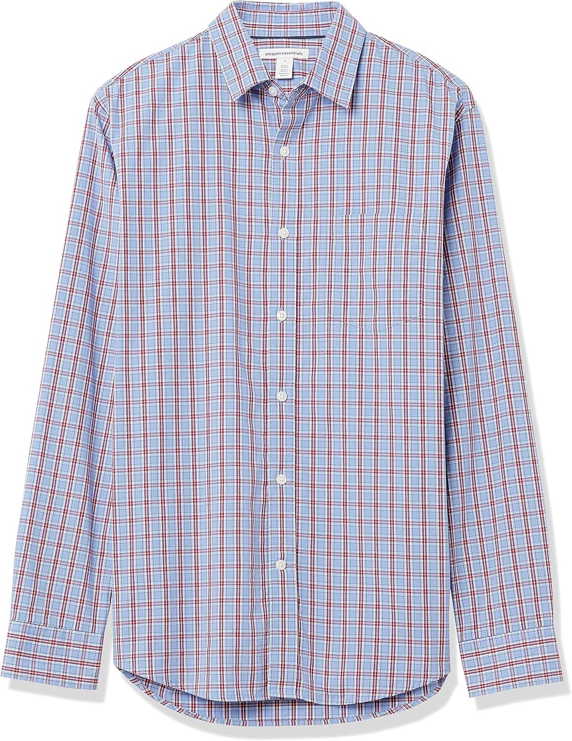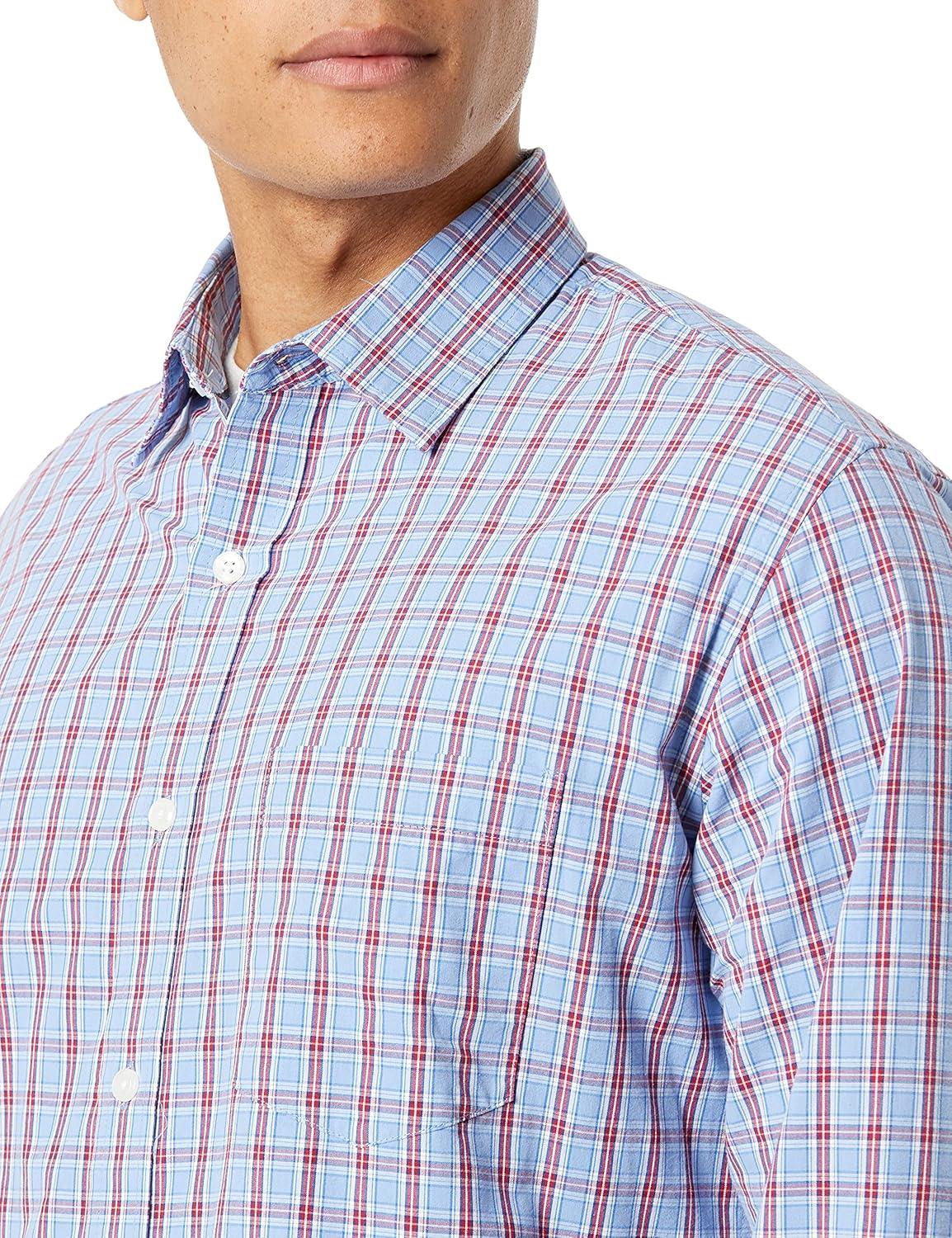 Amazon Essentials Men’s Regular-Fit Long-Sleeve Casual Poplin Shirt(Light Blue Red Plaid)