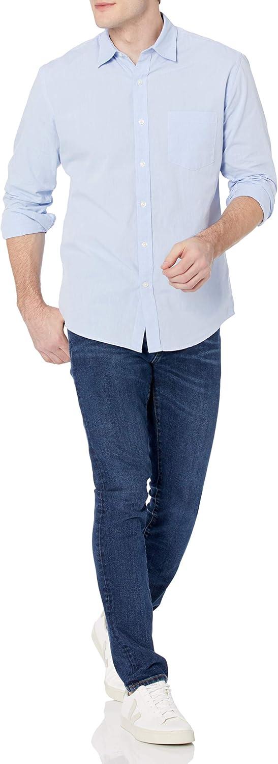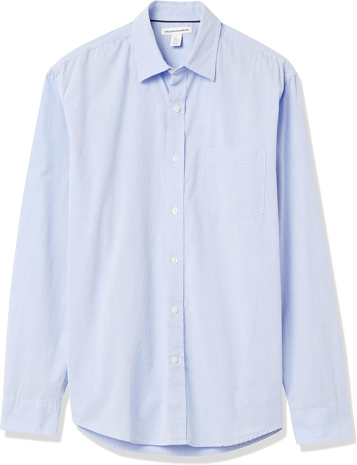 Amazon Essentials Men's Regular-Fit Long-Sleeve Casual Poplin Shirt(Light Blue)