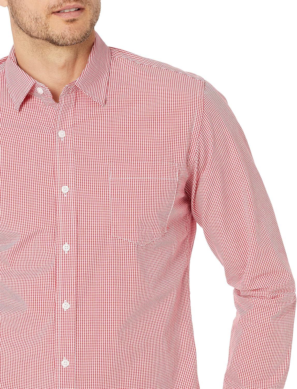 Amazon Essentials Men's Regular-Fit Long-Sleeve Casual Poplin Shirt(Red Gingham)