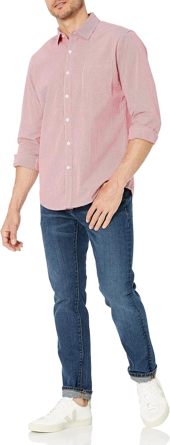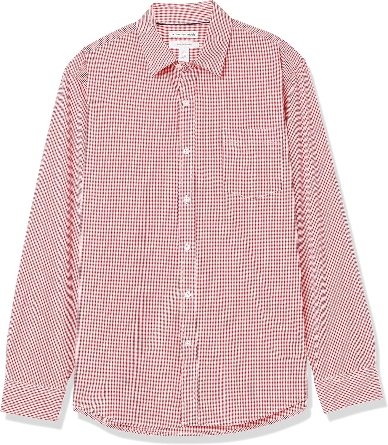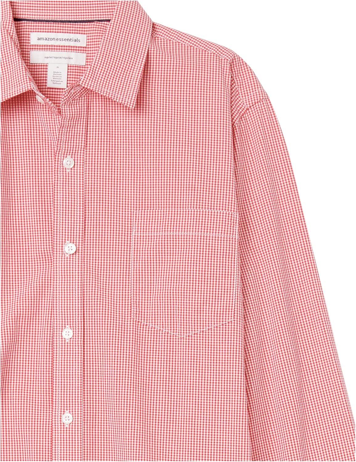 Amazon Essentials Men’s Regular-Fit Long-Sleeve Casual Poplin Shirt(Red Gingham)