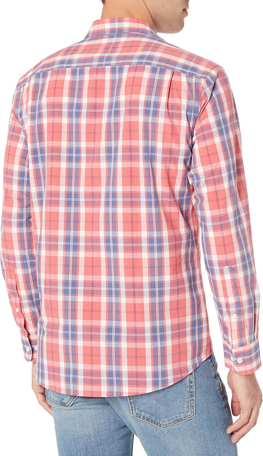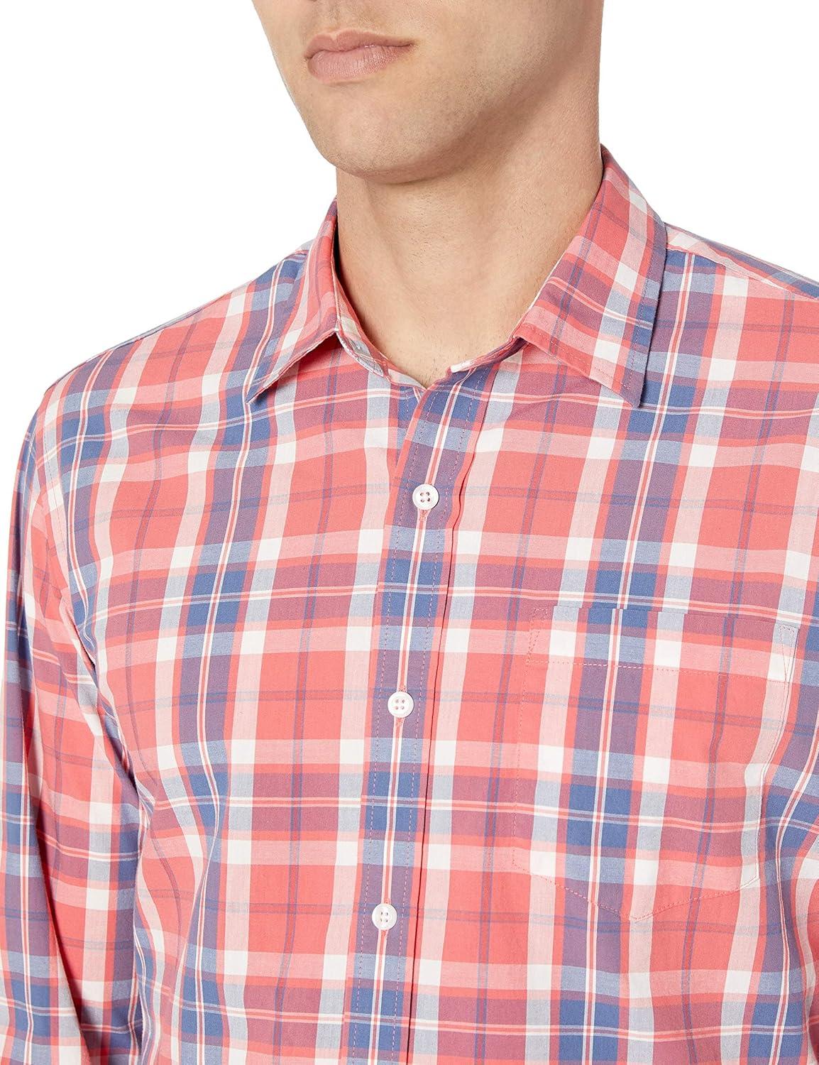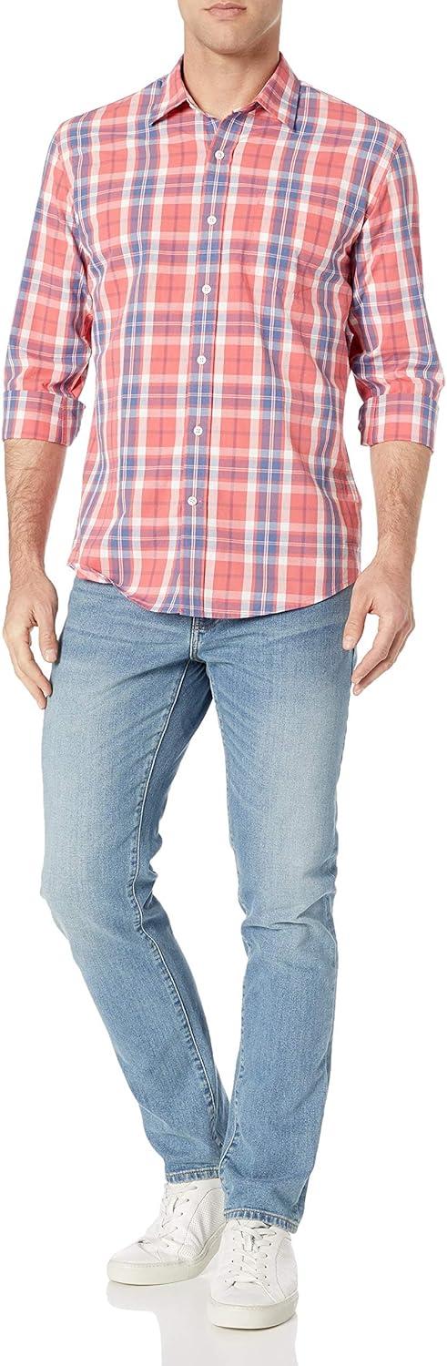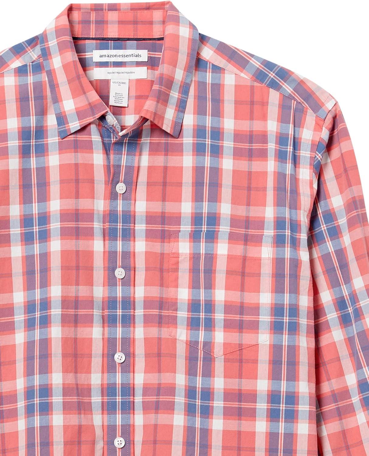 Amazon Essentials Men’s Regular-Fit Long-Sleeve Casual Poplin Shirt(Washed Red Windowpane)