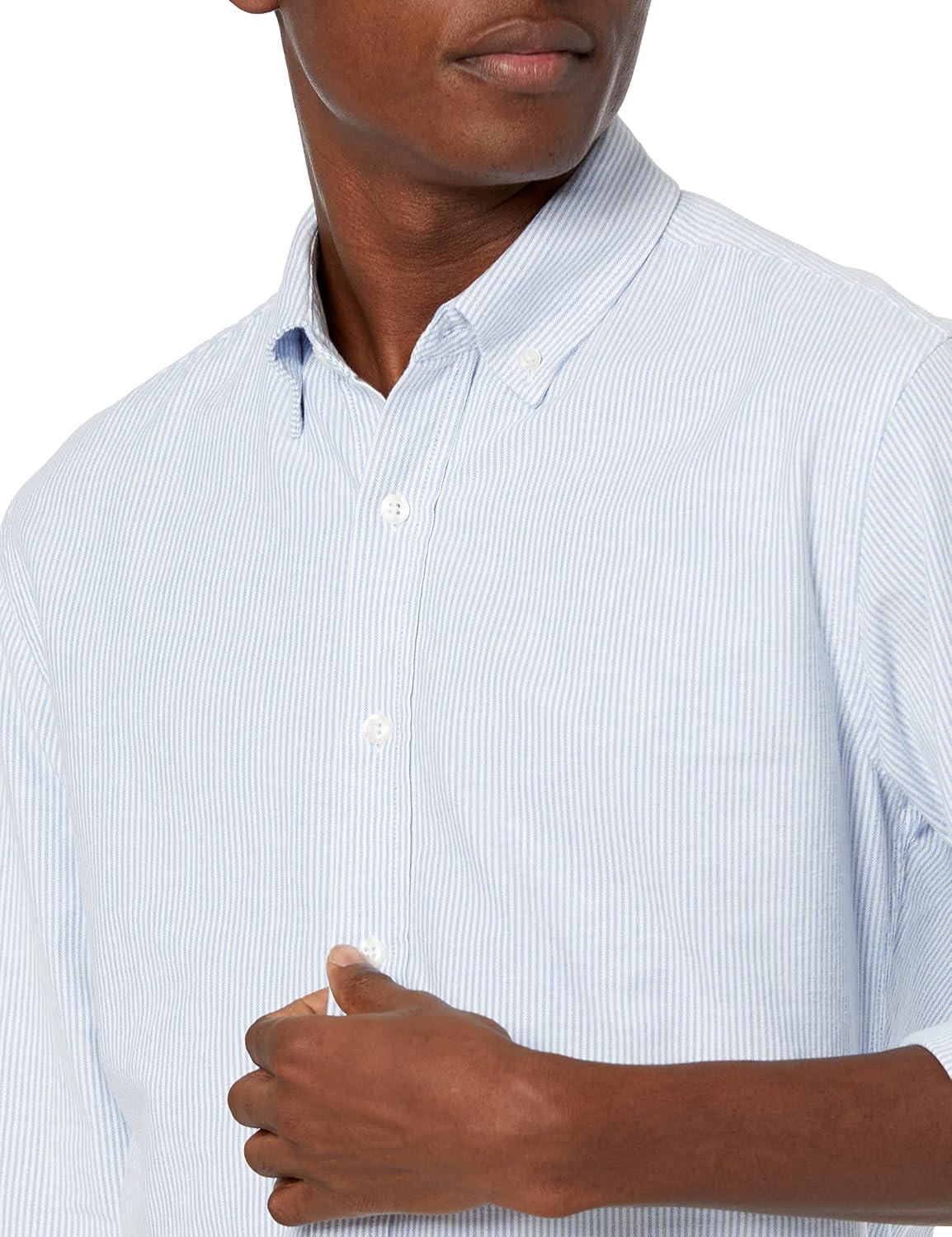 Amazon Essentials Men's Regular-Fit Long Sleeve Oxford Shirt(Blue Stripe)