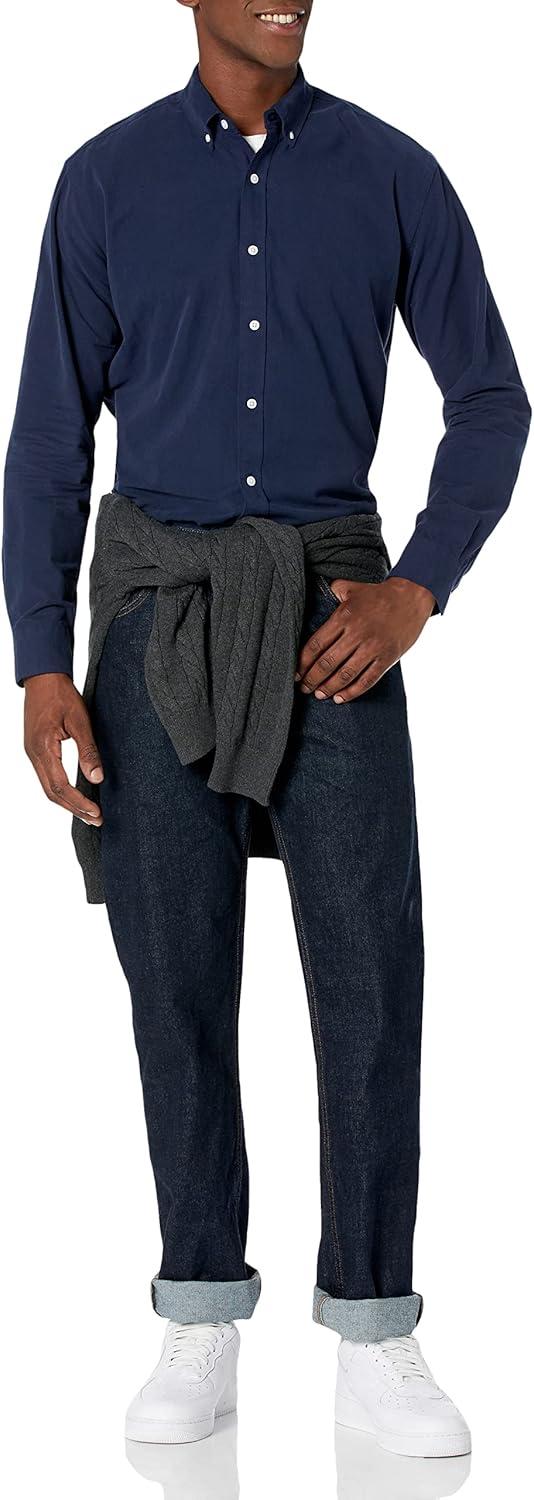 Amazon Essentials Men's Regular-Fit Long Sleeve Oxford Shirt(Navy)