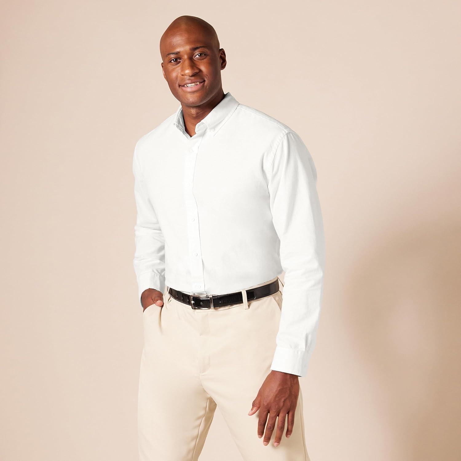 Amazon Essentials Men’s Regular-Fit Long Sleeve Oxford Shirt(White)