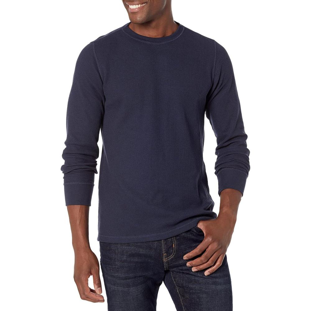 Amazon Essentials Men’s Regular-Fit Long-Sleeve Waffle Shirt(Navy)