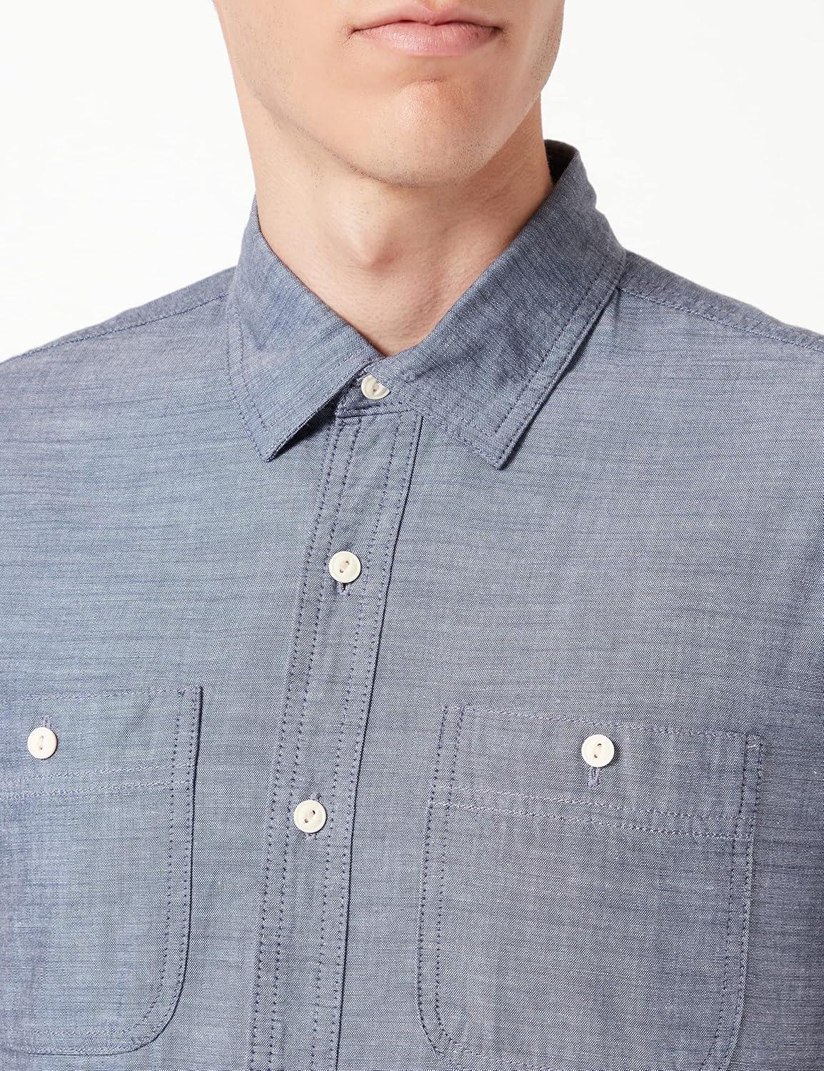 Amazon Essentials Men’s Regular-Fit, Short-Sleeve Button-Down Chambray Shirt(Light Blue)