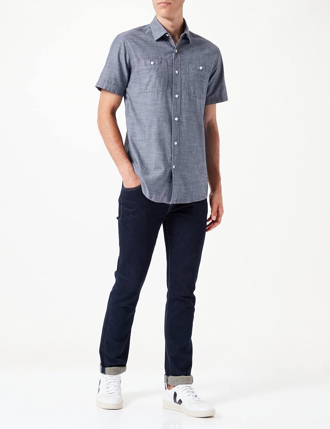 This men's short-sleeve button-down shirt blends comfort and style, making it a perfect addition to your wardrobe for warmer months. Made from lightweight chambray, it offers a breezy yet polished look, ideal for casual outings or as a staple in your collection. Featuring a spread collar and button-up front, this shirt is stylish and suitable for any setting.