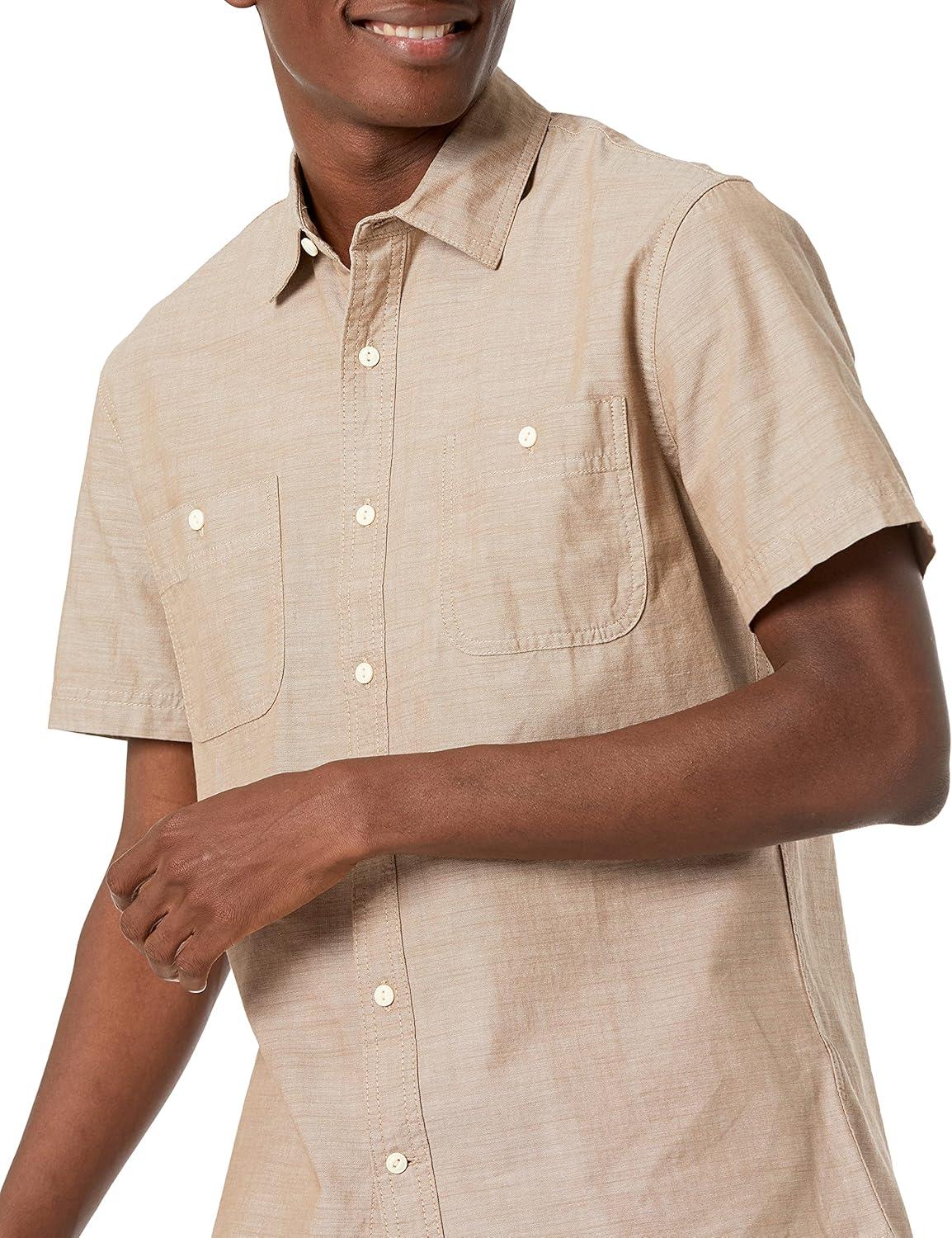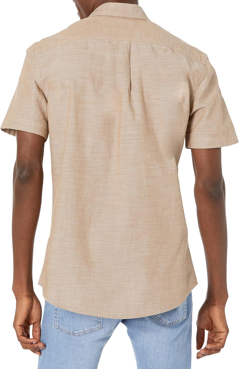 This men's short-sleeve button-down shirt blends comfort and style, making it a perfect addition to your wardrobe for warmer months. Made from lightweight chambray, it offers a breezy yet polished look, ideal for casual outings or as a staple in your collection. Featuring a spread collar and button-up front, this shirt is stylish and suitable for any setting.