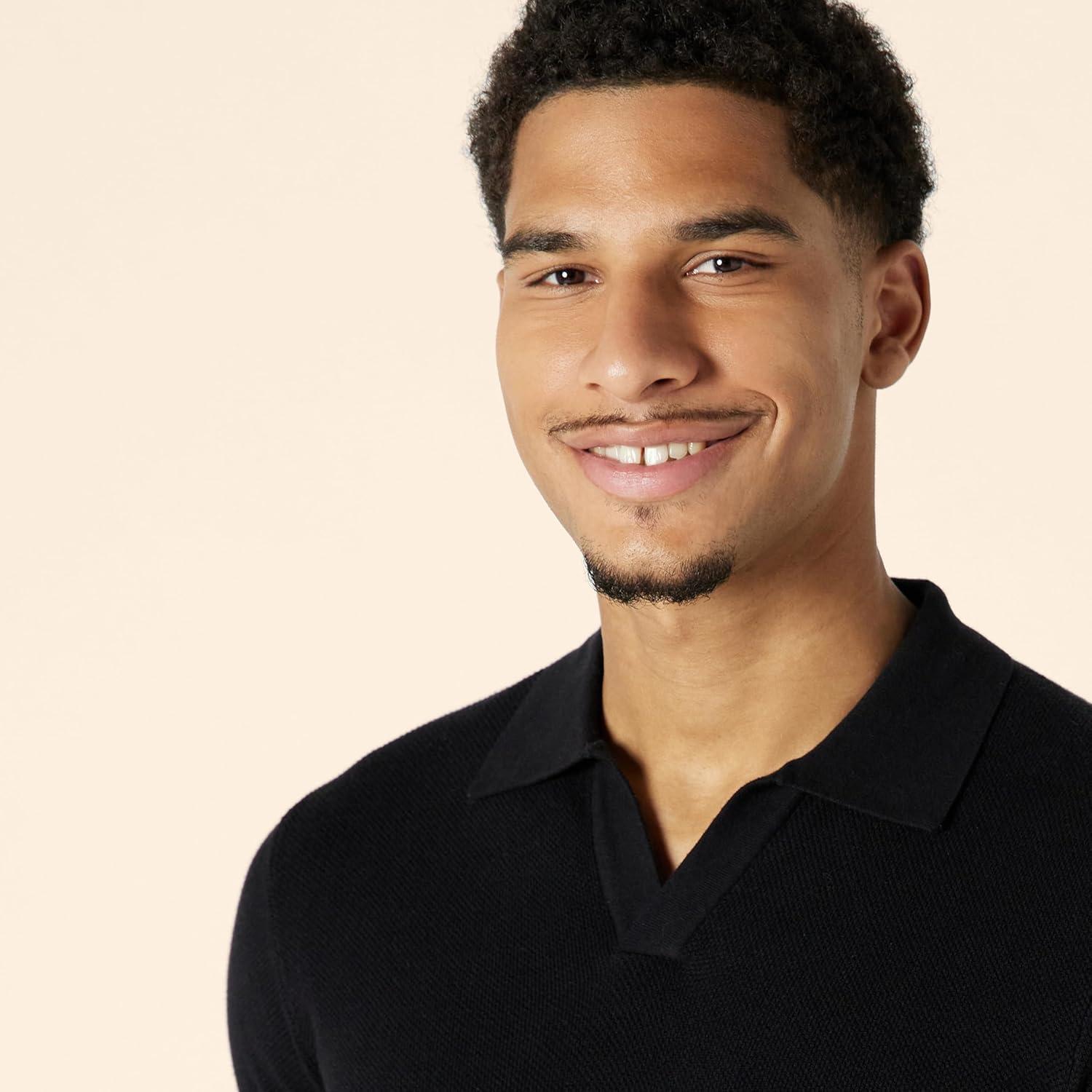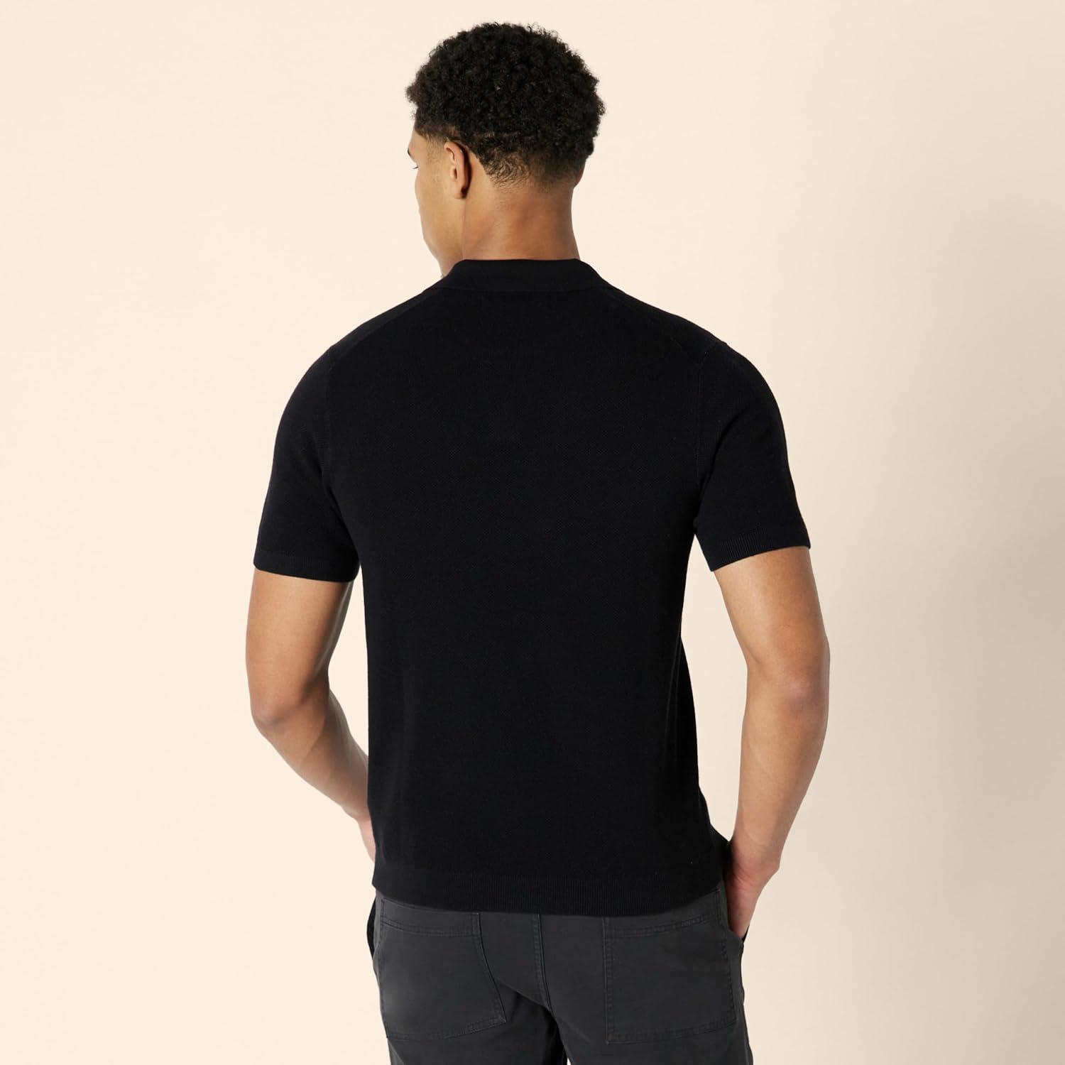 Amazon Essentials Men's Regular-Fit Short-Sleeve Knit Polo Sweater(Black)