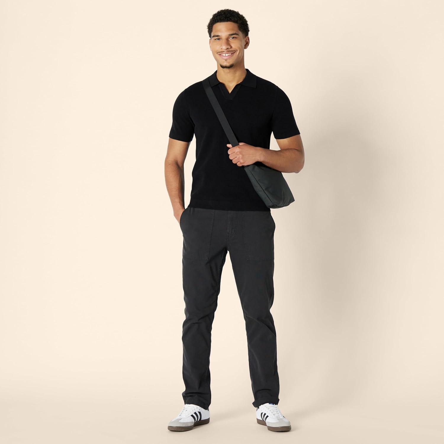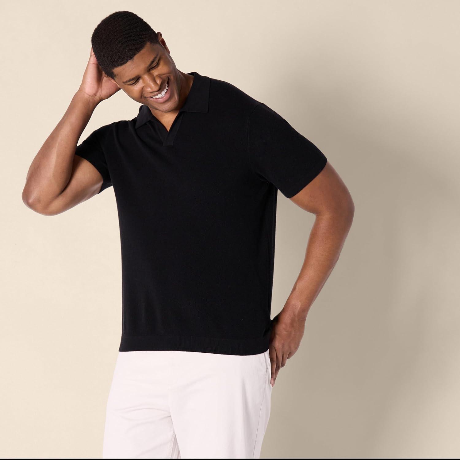 Amazon Essentials Men’s Regular-Fit Short-Sleeve Knit Polo Sweater(Black)