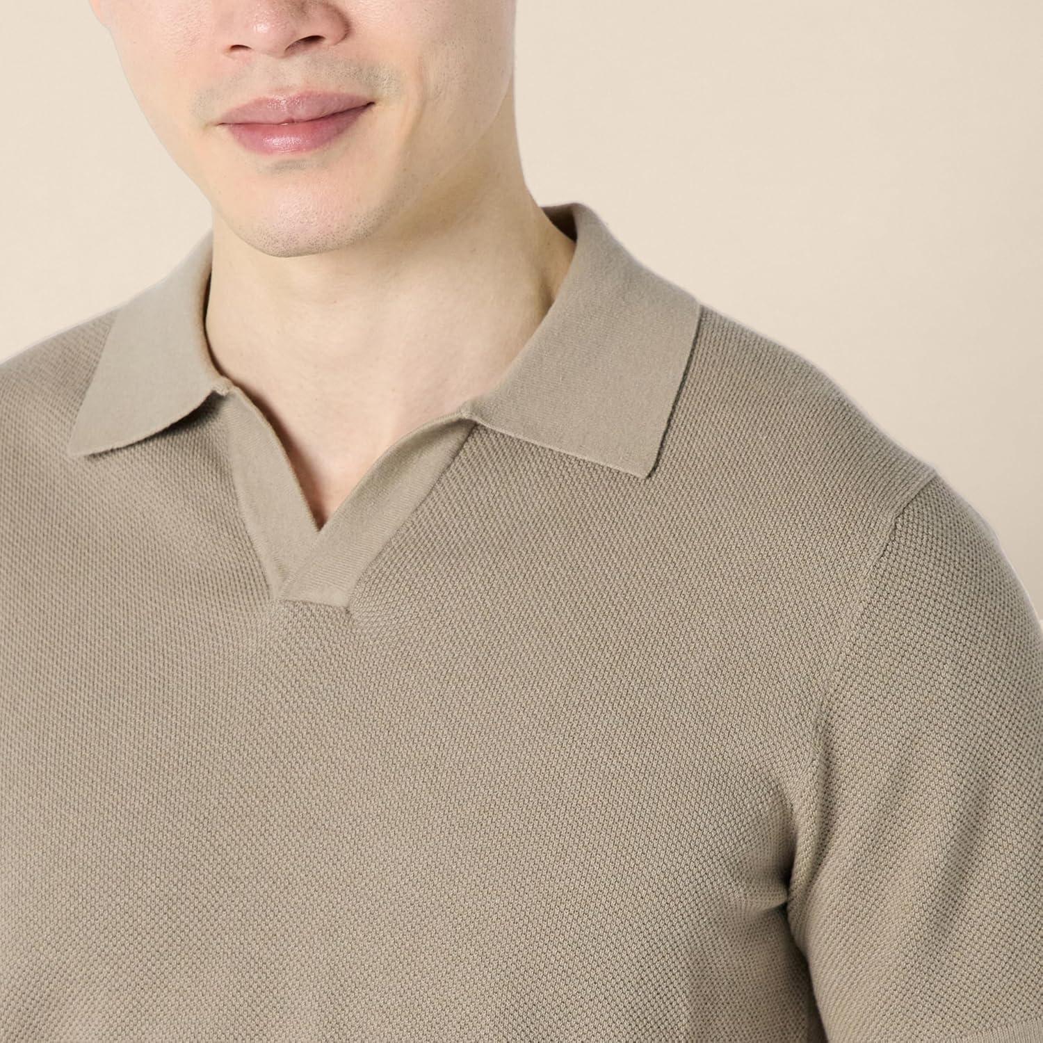 Amazon Essentials Men's Regular-Fit Short-Sleeve Knit Polo Sweater(Mushroom Brown)