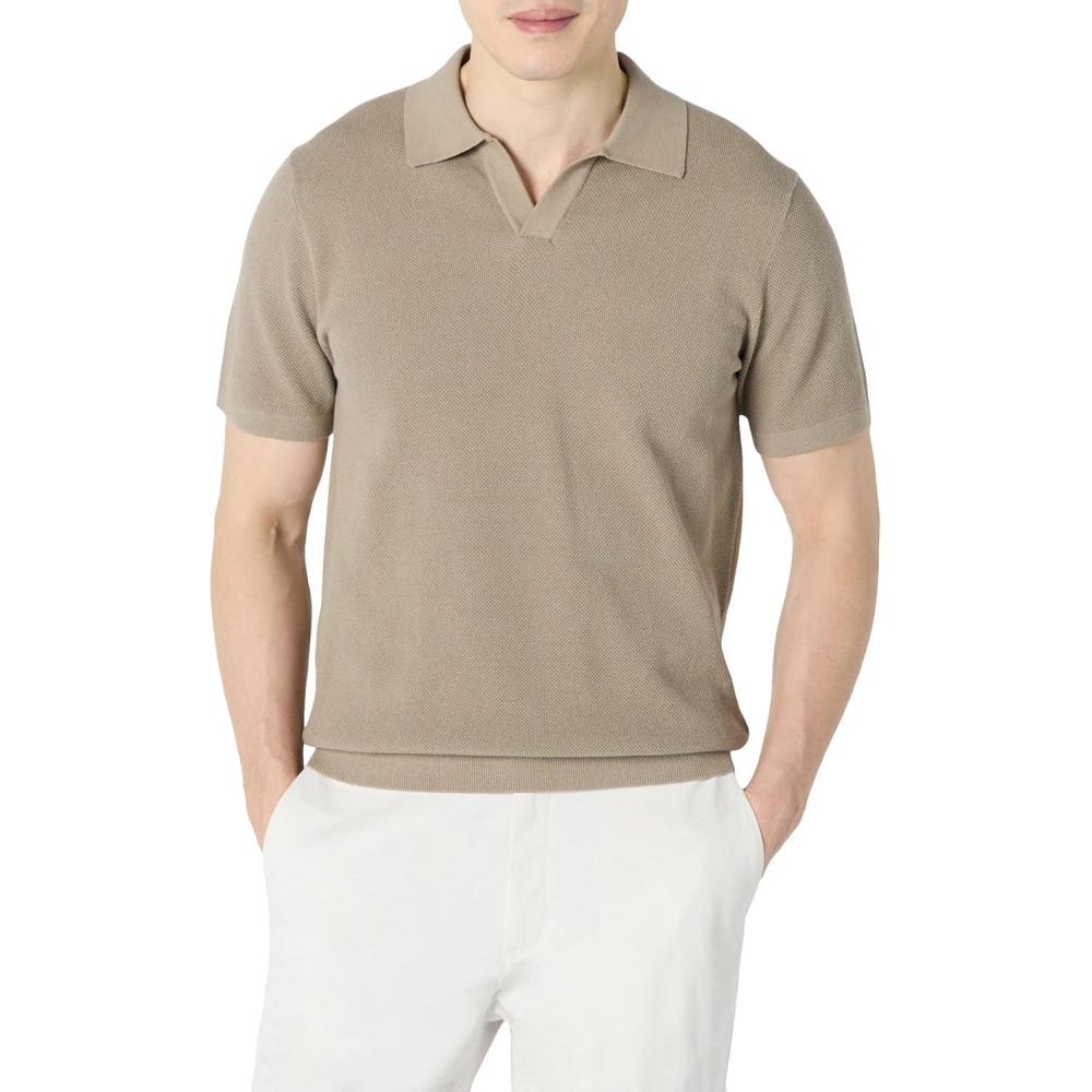 Amazon Essentials Men’s Regular-Fit Short-Sleeve Knit Polo Sweater(Mushroom Brown)