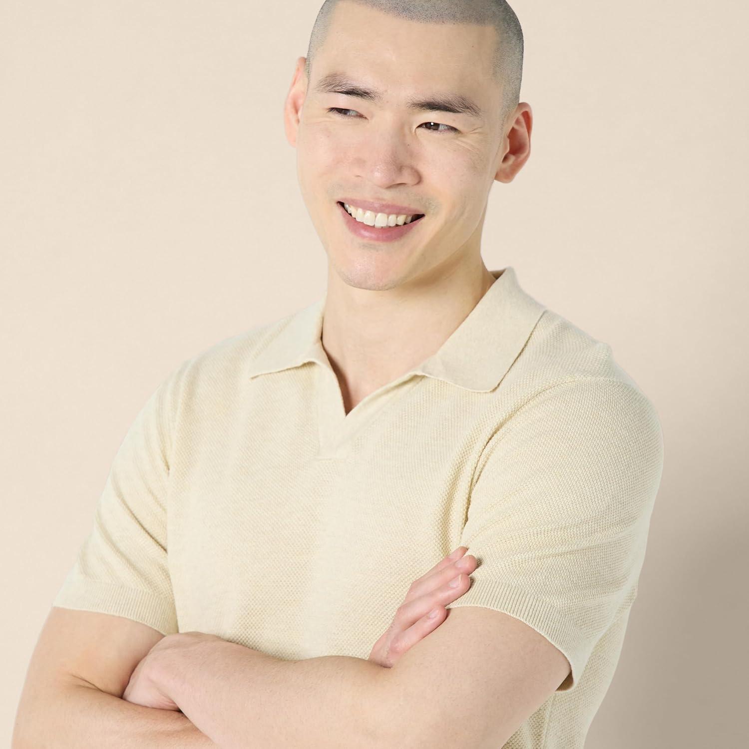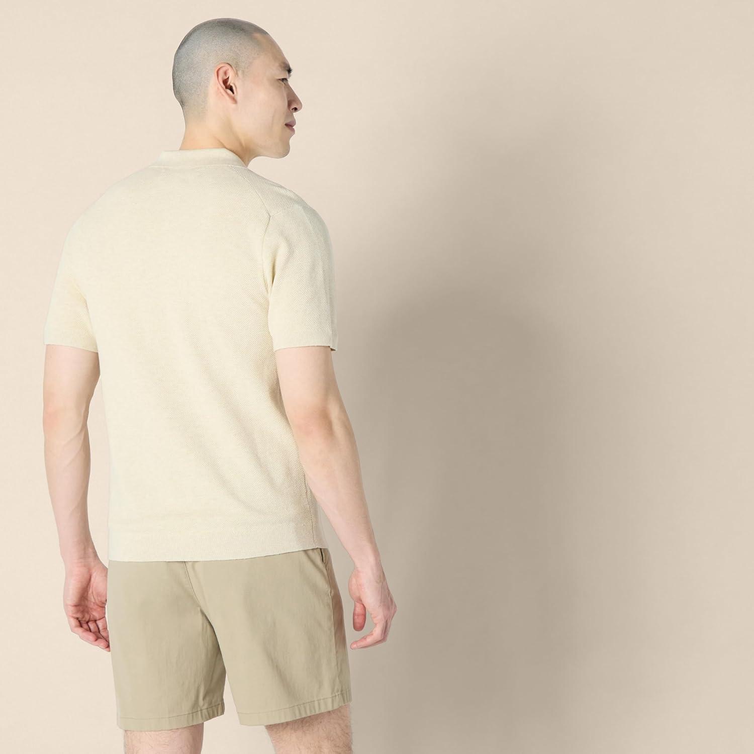 Amazon Essentials Men’s Regular-Fit Short-Sleeve Knit Polo Sweater(Sand Heather)
