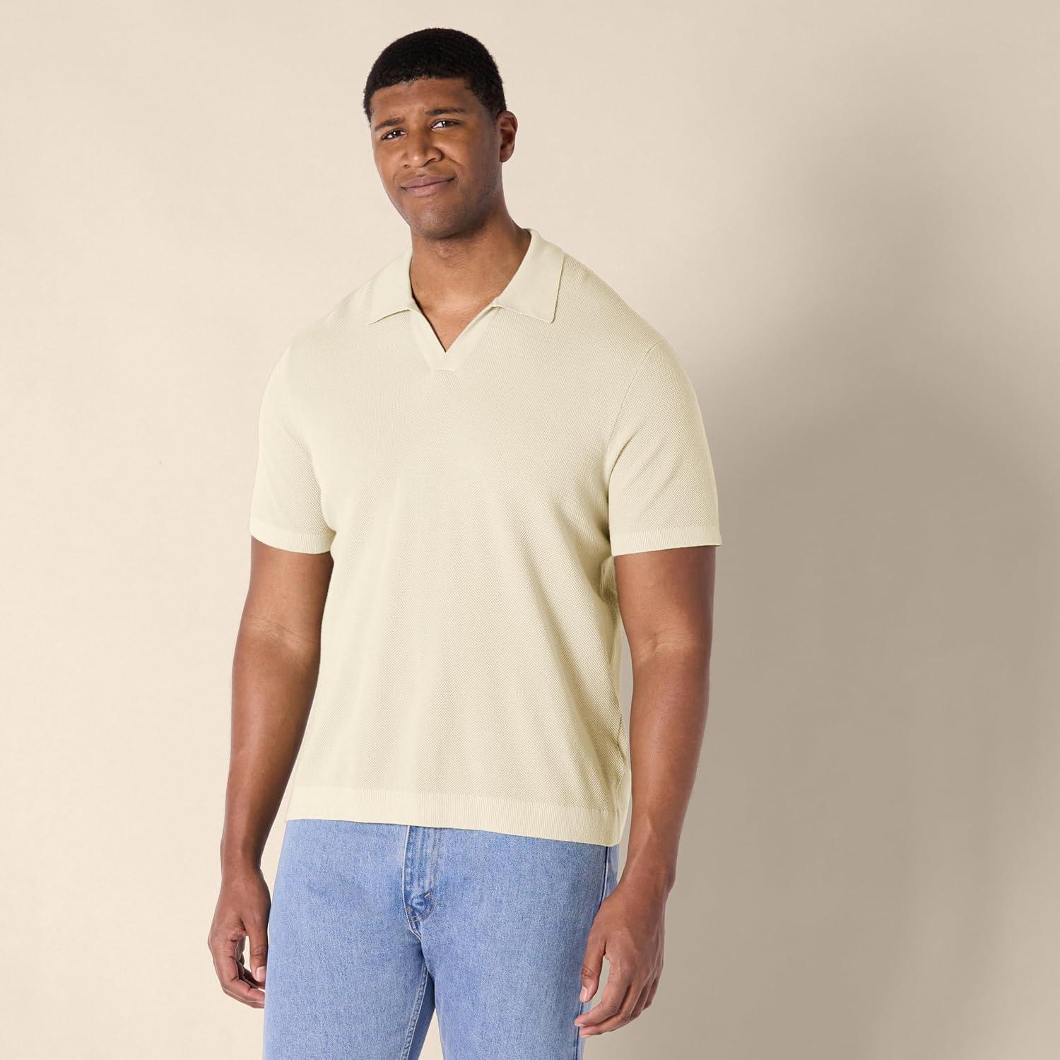 Amazon Essentials Men's Regular-Fit Short-Sleeve Knit Polo Sweater(Sand Heather)