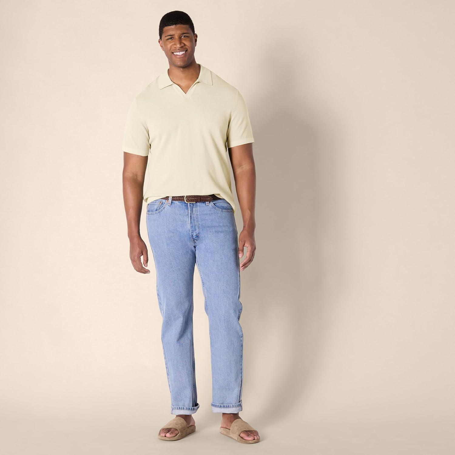 Amazon Essentials Men’s Regular-Fit Short-Sleeve Knit Polo Sweater(Sky Blue)