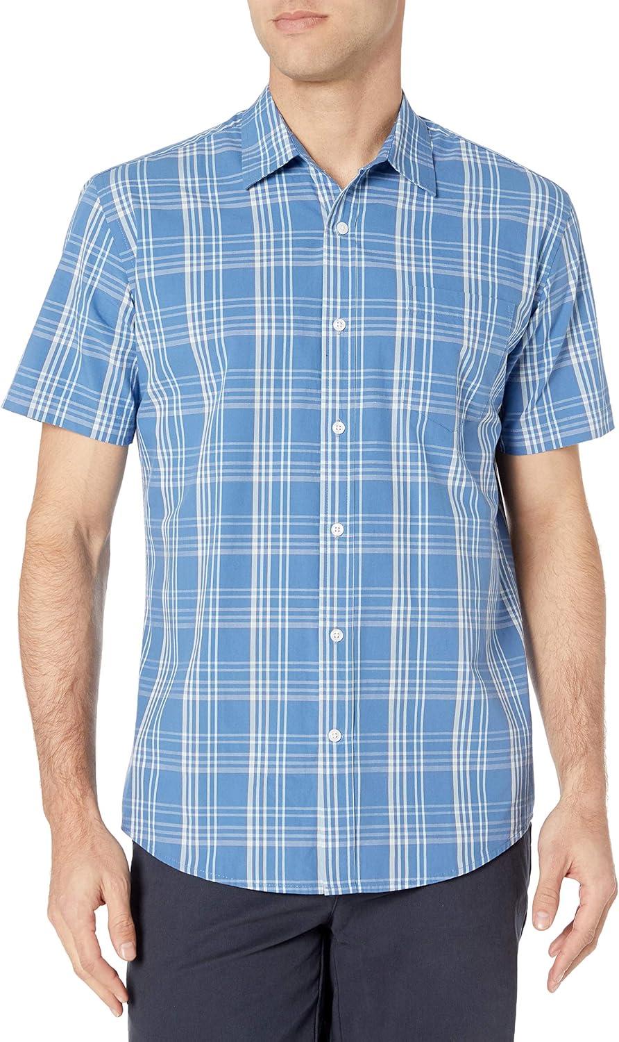 An Amazon brand – This short-sleeve button-front shirt features an allover plaid print for versatile, everyday style
