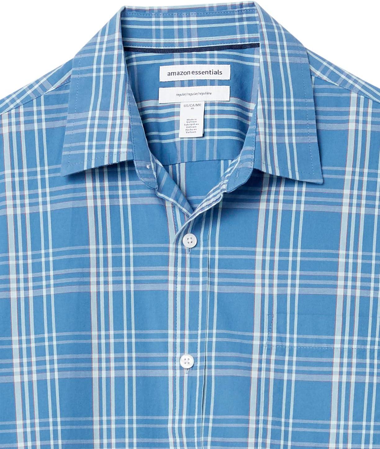 Amazon Essentials Men’s Regular-Fit Short-Sleeve Poplin Shirt(Blue/Grey)