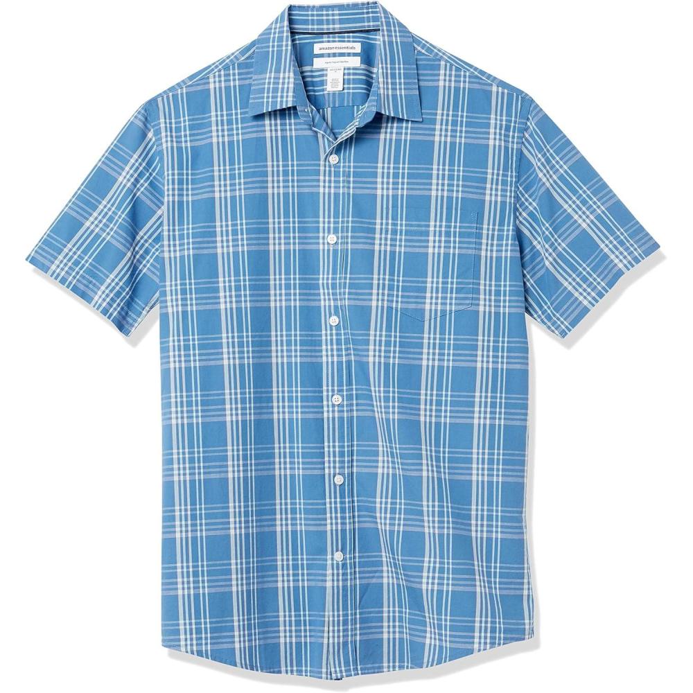 Amazon Essentials Men’s Regular-Fit Short-Sleeve Poplin Shirt(Aqua Blue Gingham)