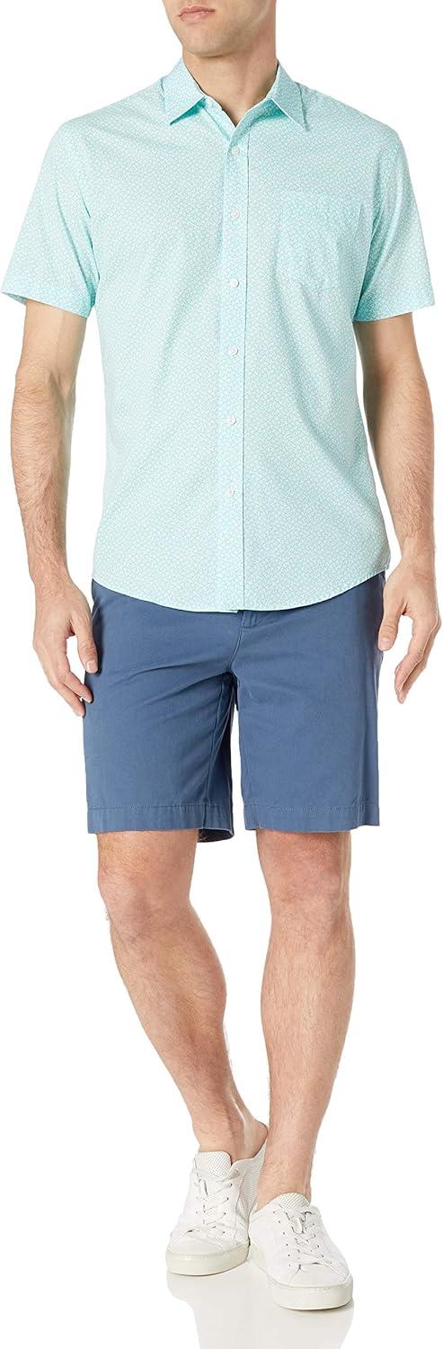 Amazon Essentials Men’s Regular-Fit Short-Sleeve Poplin Shirt(Aqua Blue Leaf Print)