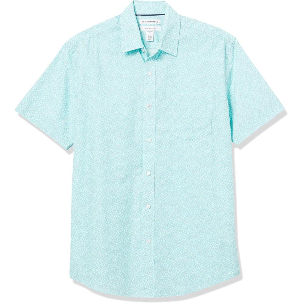 Amazon Essentials Men's Regular-Fit Short-Sleeve Poplin Shirt(Aqua Blue Leaf Print)
