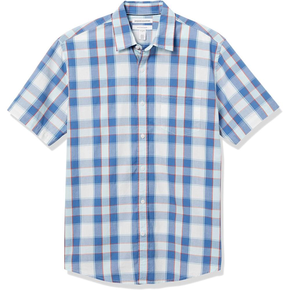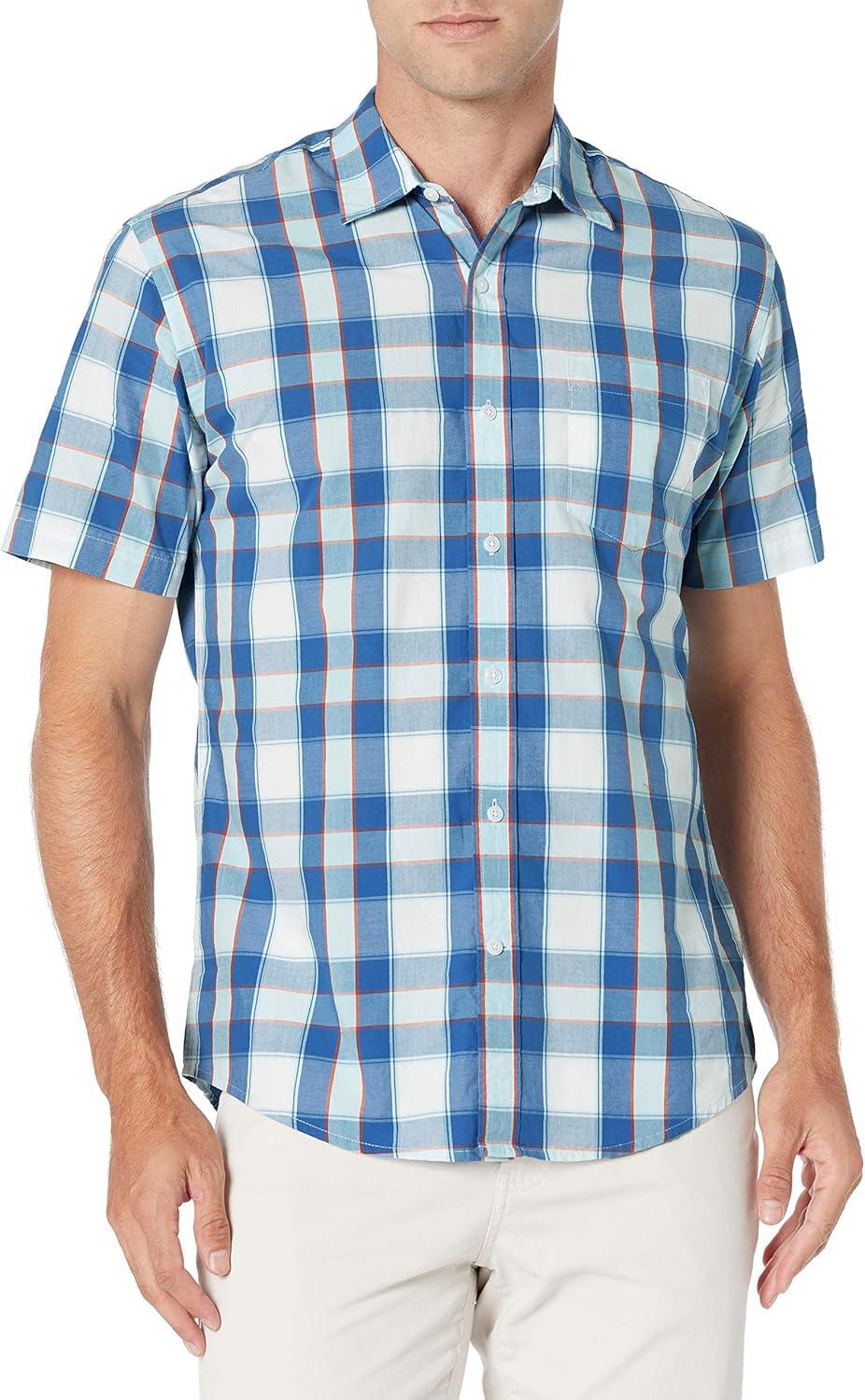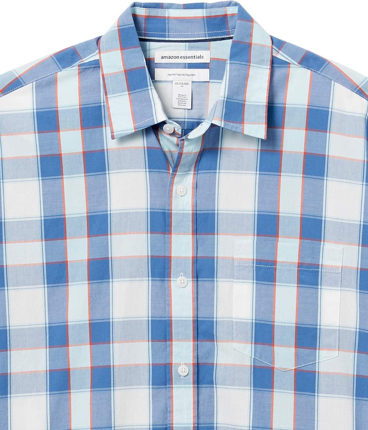 Amazon Essentials Men’s Regular-Fit Short-Sleeve Poplin Shirt(Blue Buffalo Check)