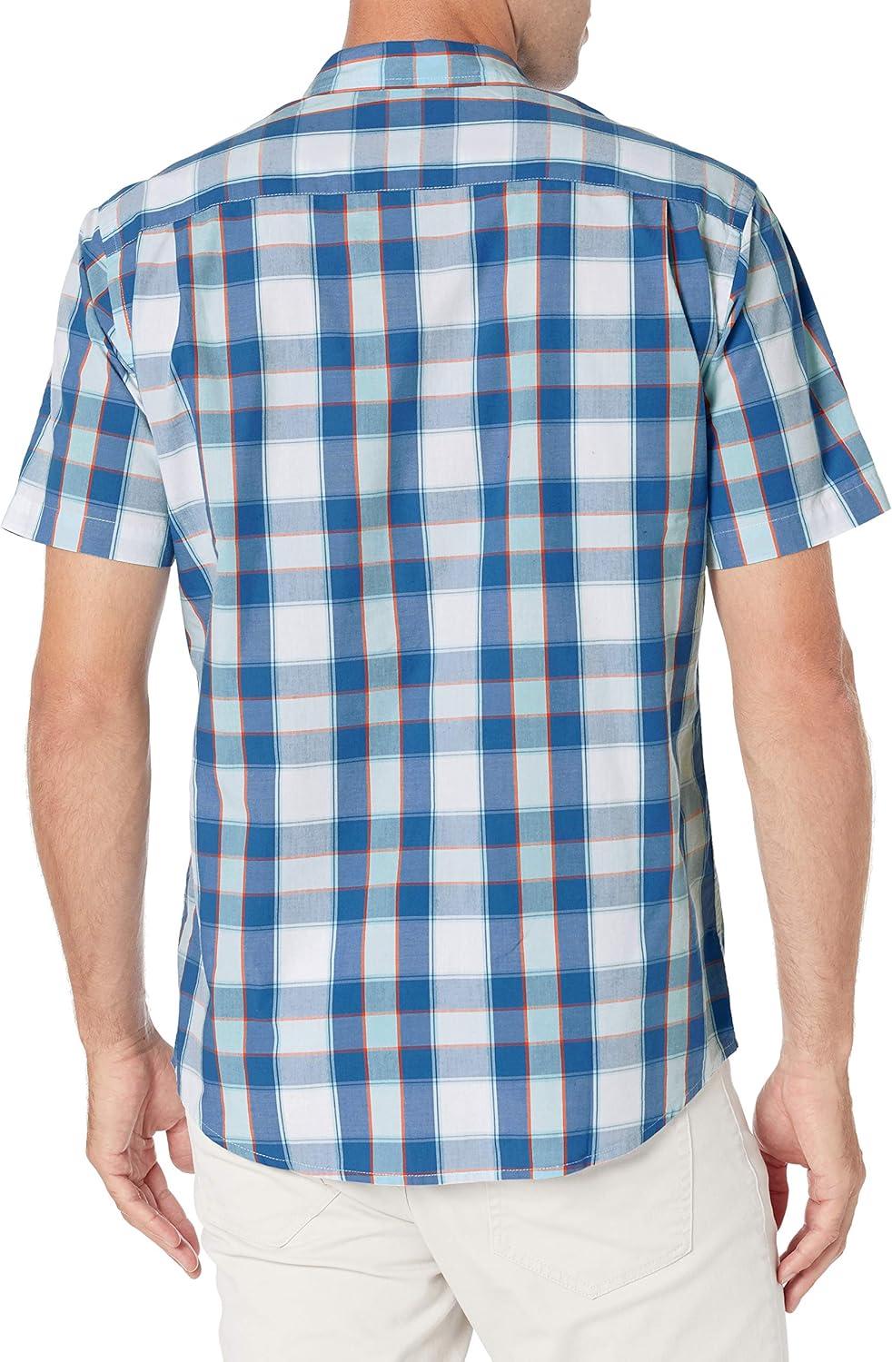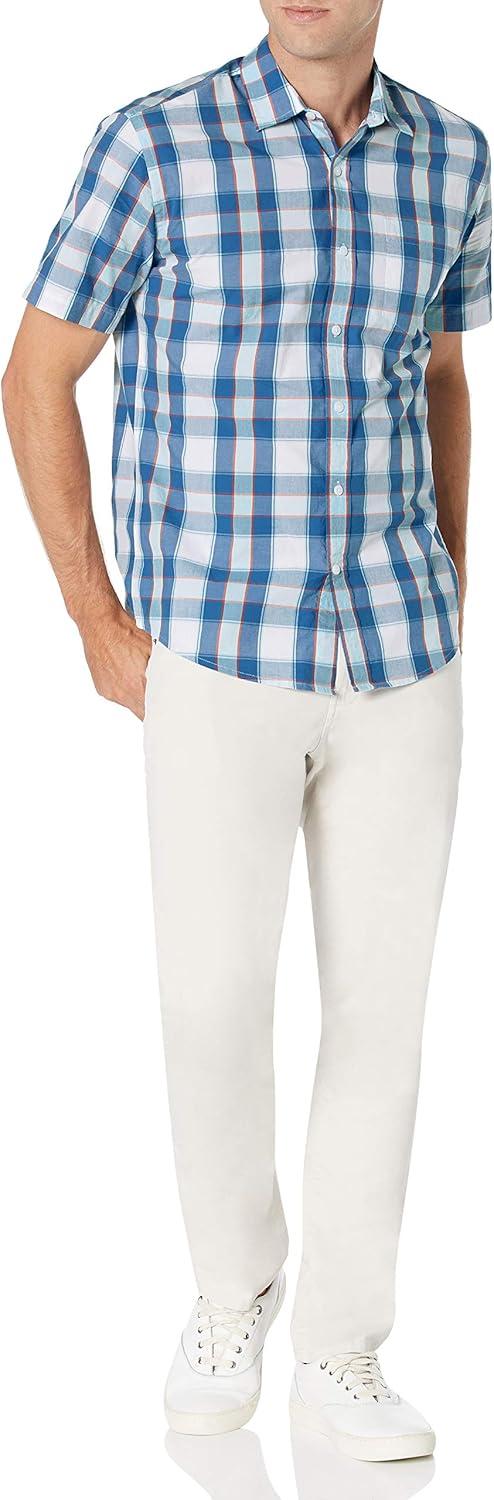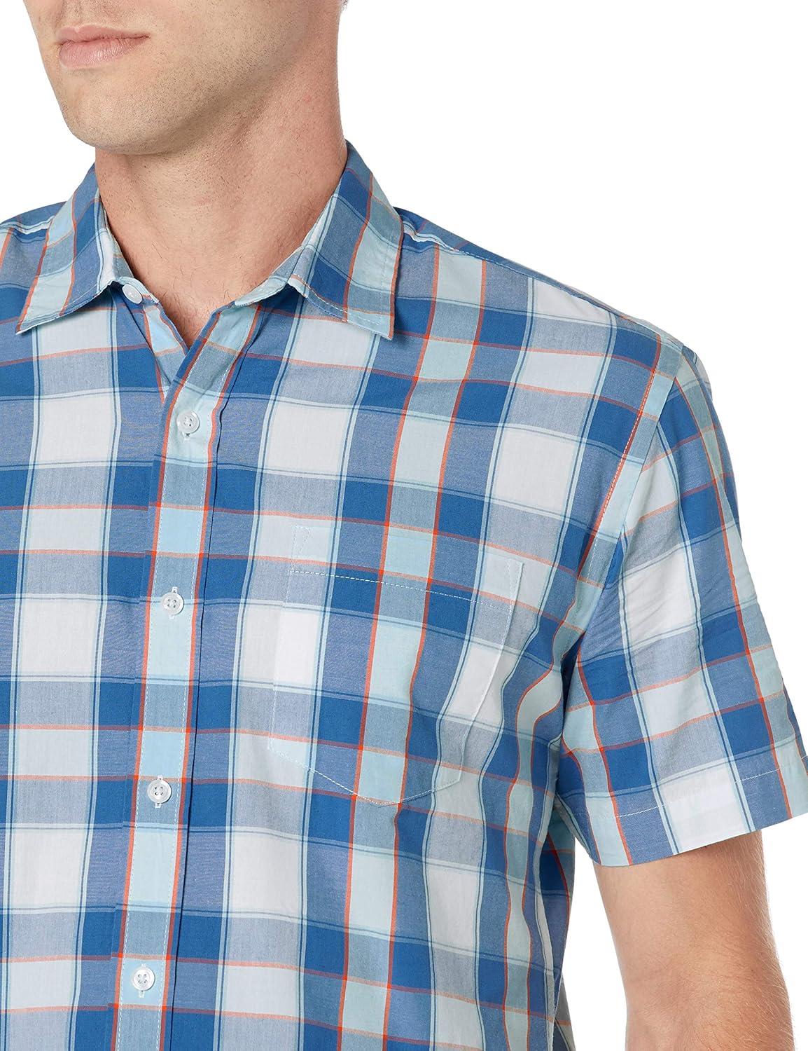 Amazon Essentials Men’s Regular-Fit Short-Sleeve Poplin Shirt(Blue Buffalo Check)