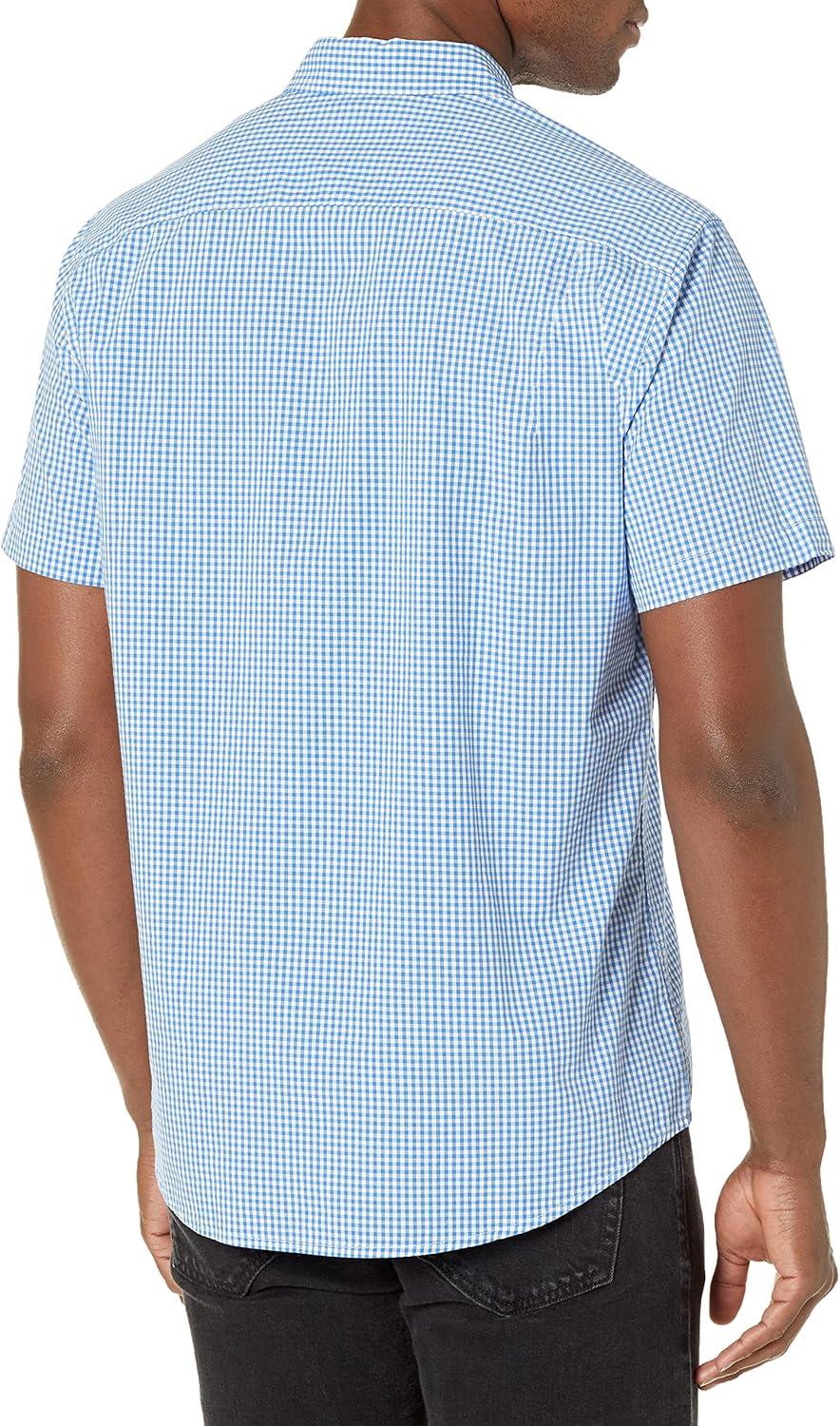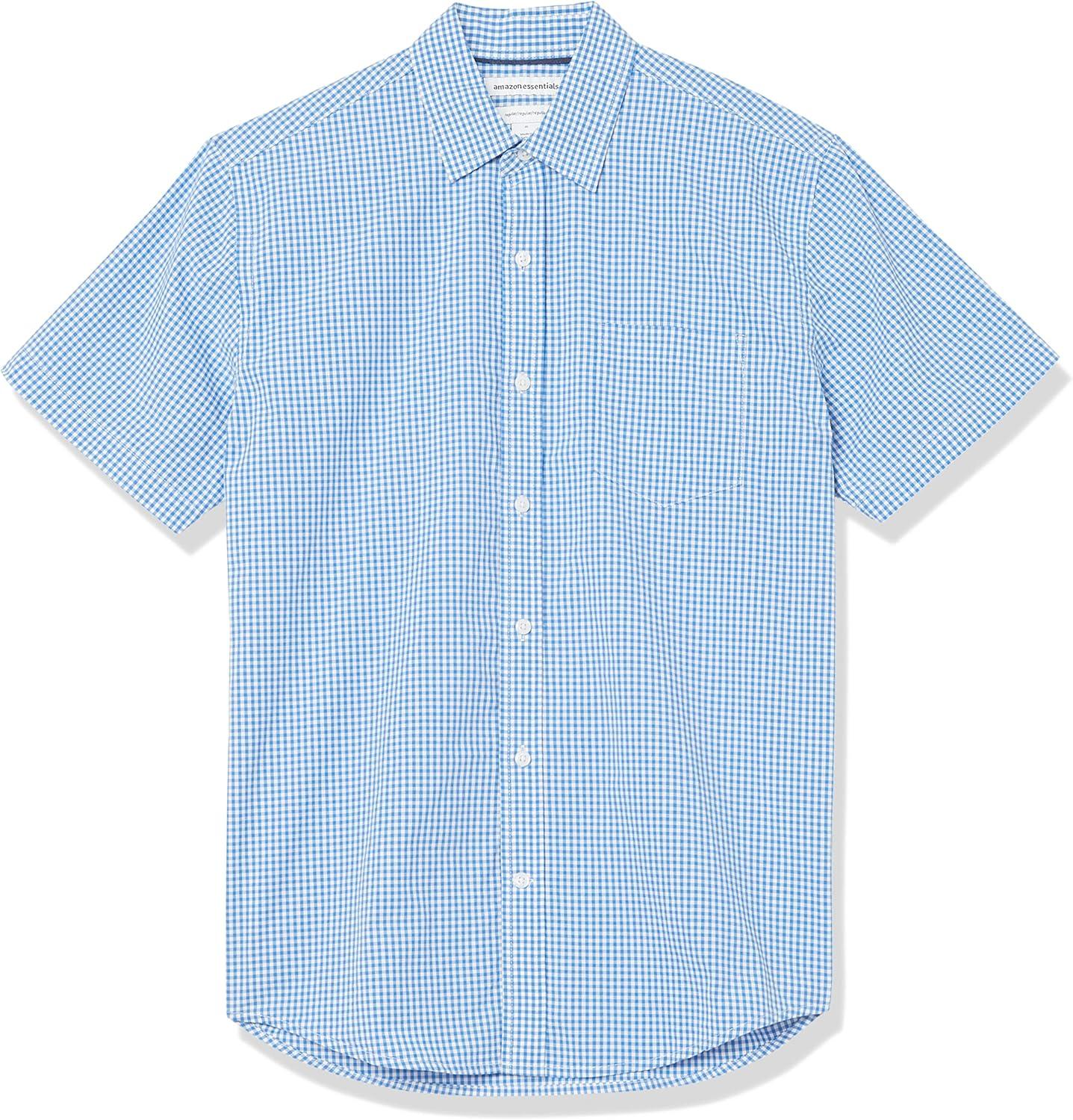 Amazon Essentials Men's Regular-Fit Short-Sleeve Poplin Shirt(Blue Gingham)