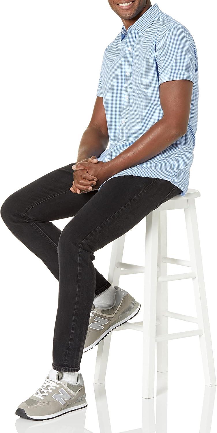 Amazon Essentials Men’s Regular-Fit Short-Sleeve Poplin Shirt(Blue Gingham)