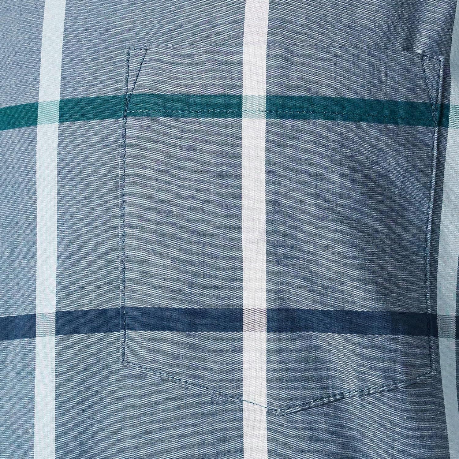 Amazon Essentials Men’s Regular-Fit Short-Sleeve Poplin Shirt(Denim Large Plaid)